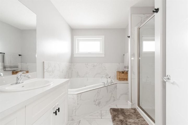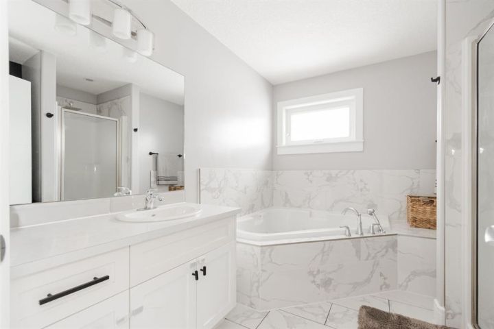 Welcome to 153 Beaconwood Place: a beautifully maintained bi-level home that blends modern style with incredible functionality. Built in 2017 and kept in pristine condition, this property offers a bright open-concept layout, a stunning white kitchen, a fully developed basement with a wet bar, and incredible outdoor potential on its large 9,409 sq/ft lot including vehicle access into the yard and space to build a second garage if desired in addition to the heated attached double garage. Inside, the main level features vinyl plank flooring, fresh neutral paint on the walls and a warm, inviting open floor plan with plenty of natural light. The kitchen stands out with its quartz counters, large island, pantry, black faucet, and upgraded black stainless steel appliances all purchased in 2023. The living and dining areas flow seamlessly together, creating the perfect space for everyday living and entertaining. The main floor is home to two bedrooms, including a beautiful primary suite that comfortably fits a king-size bed and features a black accent wall, refreshed paint and baseboards, and a four-piece ensuite with a jetted soaker tub and separate shower. The second bedroom works well for guests, children, or a home office. Main-floor laundry is conveniently located off the hallway and offers new washer and dryer (2023), added shelving, and a clean, modern feel. The lower level is where this home continues to shines. With high ceilings, an open rec room, and a wet bar complete with a mini fridge, this area is perfect for entertaining, relaxing or creating the ultimate movie room or games space. The basement also includes two additional bedrooms, a full bathroom, and a second laundry hookup for added convenience. Outside, the fully fenced yard offers exceptional possibility with a wide gate that allows you to drive directly into the yard, perfect for extra parking, recreational toys, storage or future garage development. Enjoy the back deck during the warmer months over looking the expansive yard and the flexibility to personalize the space as you wish. Additional highlights include central AC installed in 2023 and a heated double attached garage, with the ride-on lawn mower included for easy lawn care. Thoughtfully cared for, turnkey with beautiful finishes, 153 Beaconwood Place is a rare find in the desirable neighbourhood of Beacon Hill, surrounded by trails and outdoor adventure. Schedule your showing today and experience the charm, comfort, and impressive lot potential this home offers.