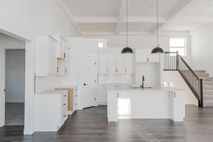 Introducing The Mackinley job #354, a highly sought-after modified bi-level built by Crosslink, now reimagined with a fresh, contemporary edge. This standout floor plan continues to impress with its signature architectural details and elevated finishes throughout. Step into the stunning great room, highlighted by an impressive 16 ft coffered ceiling, floor-to-ceiling windows, and a cozy gas fireplace. The open-concept kitchen is designed to impress, featuring upgraded cabinetry, quartz countertops, wood soft-close drawers, and undermount lighting, making it the perfect space for both everyday living and entertaining. On the main floor you can also find a full bathroom and 2 bedrooms. Upstairs, a spacious loft/office overlooks the main living area and leads to the luxurious primary suite. This retreat-style bedroom offers a spa-inspired five-piece ensuite with a soaker tub, dual vanities, a stand-up shower, and a massive walk-in closet. The 34' x 24' triple garage comes fully equipped, drywalled, plumbed for a heater, complete with hot/cold taps and a floor drain ready for all your storage and workspace needs. The basement is a blank canvas awaiting your vision or can be finished to the proposed layout for even more living space. This refreshed and always-popular floor plan is must-see. Contact your favorite agent to set up a private viewing! Photos are samples from a previous build and are subject to change.