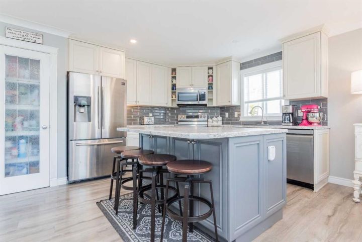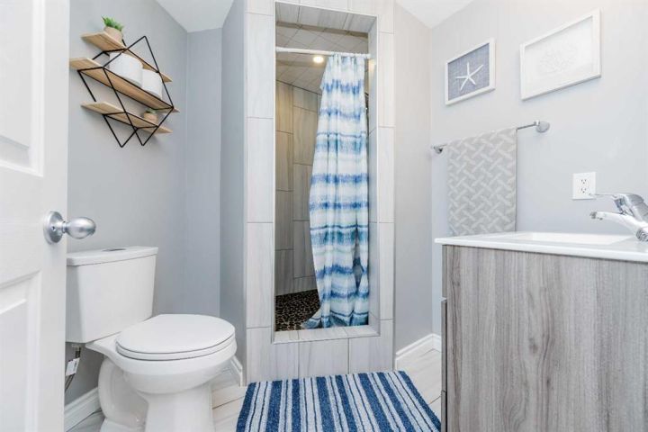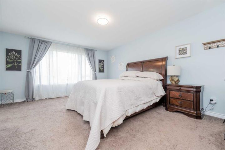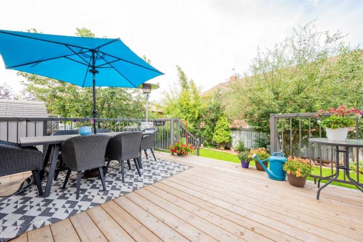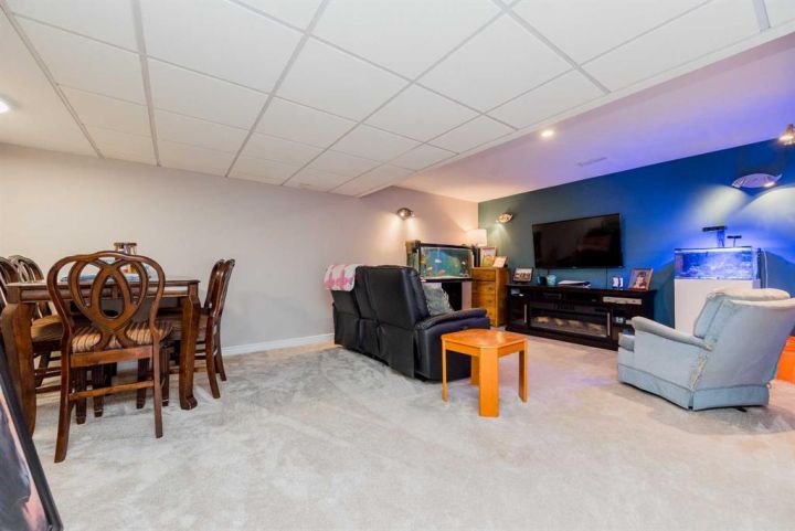 Welcome to this beautifully updated family home, ideally located close to parks, schools, and walking trails. Step inside to a grand entrance with high ceilings and a front sitting area that can double as a formal dining space. The main level features an open floor plan filled with natural light, highlighted by a cozy gas fireplace and large windows overlooking the yard. The renovated kitchen (2018) is a standout, offering an island with eating bar, pantry, soft-close cabinets and drawers, and four stainless steel appliances — including a brand-new stove. A convenient half bath and laundry room off the garage add to the functionality of the main floor. Upstairs, the spacious primary suite includes a huge window, a generous walk-in closet, and a relaxing ensuite with his & hers sinks, a large soaker tub, and a separate shower. Two additional good-sized bedrooms and a full bathroom with a deep tub complete the upper level. The fully finished basement, also renovated in 2018, offers fantastic extra living space with a large family room, two more bedrooms, and a 3-piece bathroom featuring a tiled shower. The backyard is truly stunning — enjoy mature trees, a shed, dog run, afternoon shade, and a large deck built in 2023. Additional recent updates include new shingles (2023) and a new front deck (2024). A well-maintained, move-in-ready home in a great location — this one is a must-see!