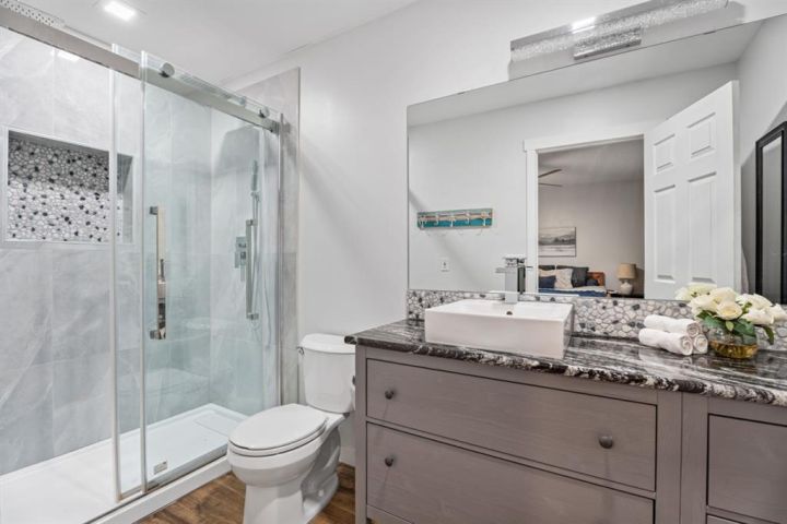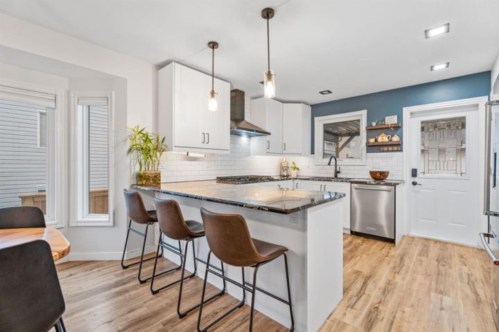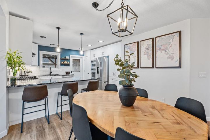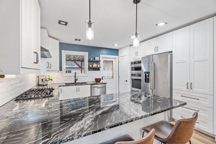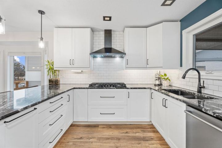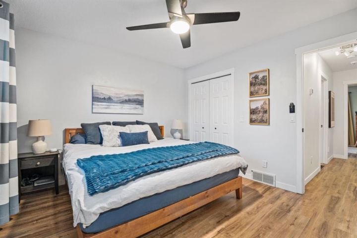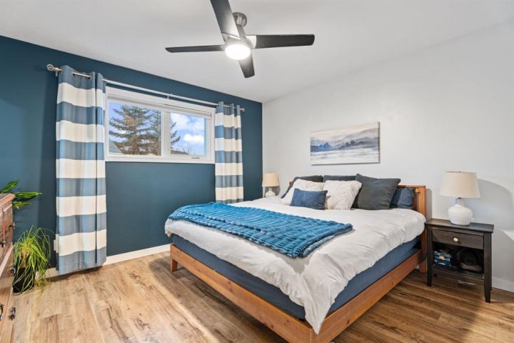 **Open House, Sun. 23, 1-3pm** This fully developed home checks all the boxes, offering upgrades, functional living spaces, and a location you’ll love. Thoughtfully renovated in sought after Sheep River Ridge, just steps to the stunning river valley! The main level features durable vinyl flooring throughout and is brightened by newer triple pane windows and doors. The L shaped kitchen with island is a standout with granite countertops, stainless steel appliances, a gas cooktop with hood fan, subway tile backsplash, ample storage, and a spacious dining area. On the main level you’ll find three comfortable bedrooms, including a primary suite complete with a tiled shower. Both upper bathrooms feature granite counters for a cohesive, upgraded feel. The fully finished basement adds even more versatility with a large rec room, multi purpose room, a third full bathroom with a tiled shower, heated floors and laundry. Additionally there is two generous bedrooms, ideal for guests, teens, or extended family. Plenty of storage throughout the home keeps everything organized. Enjoy year round comfort with air conditioning, and relax outdoors on the covered back deck that's perfect for all seasons. The large, landscaped yard offers room to play, garden, or unwind. The oversized heated detached garage plus RV parking is every man's dream with plenty of room to tinker. Located in a quiet, family friendly community, you’re walking distance to parks, playgrounds, the river valley pathway system, shopping, and Big Rock School. This home is perfectly suited for families, downsizers, or anyone seeking comfortable main level living with room to grow. Check out the virtual tour!