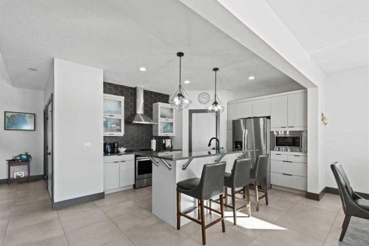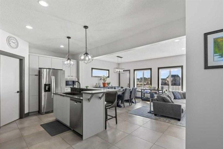 Beautifully maintained two-storey walkout backing directly onto the pond in Royal Oaks, offering a triple garage, stunning sunsets, and a long list of premium upgrades. Loved by its original owners, this home features modern finishes throughout, a top-tier drainage system, and professionally designed landscaping with imported Italian tile, extensive concrete work, and hardwired ambient lighting that transforms the yard at night. The main floor showcases an open, sun-filled layout with a custom feature wall and fireplace, large windows framing the pond, and a sleek kitchen with white cabinetry, quartz countertops, a tiled backsplash, and a walk-in pantry, with the dining area opening to a west-facing deck overlooking the water. Upstairs, the bonus room provides an ideal second living space, while the primary suite offers a true retreat with vaulted ceilings, double doors, a spa-like ensuite, and a spacious walk-in closet. The walkout basement is wide open with massive windows and high ceilings, ready for your personal touch, and the oversized triple garage delivers incredible functionality and storage. With luxurious upgrades and one of the best views in the area, plus a location just steps from parks, trails, and the school, this home stands out as one of Royal Oaks’ best.