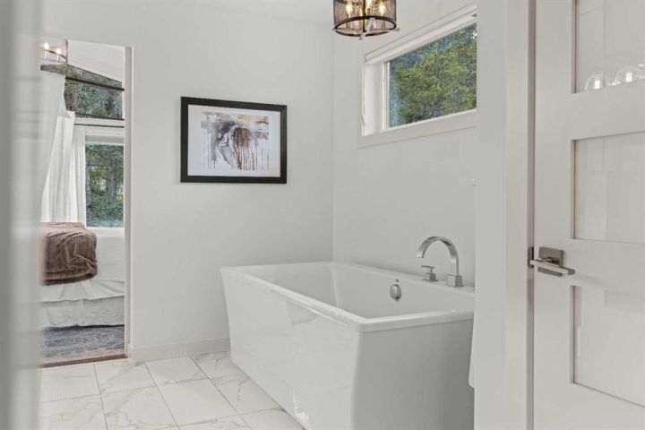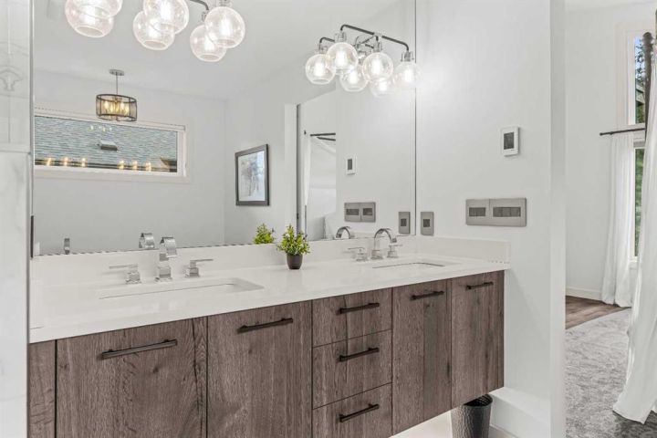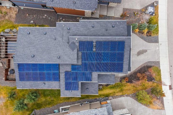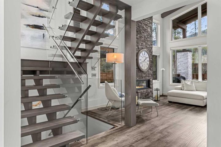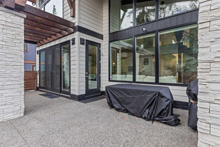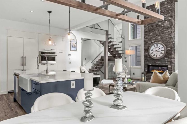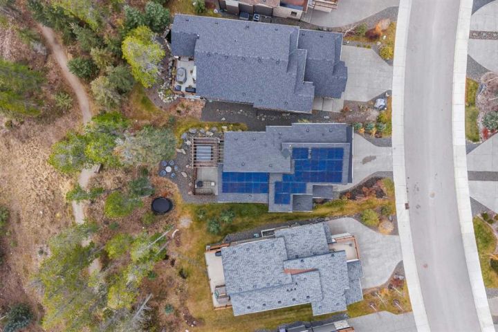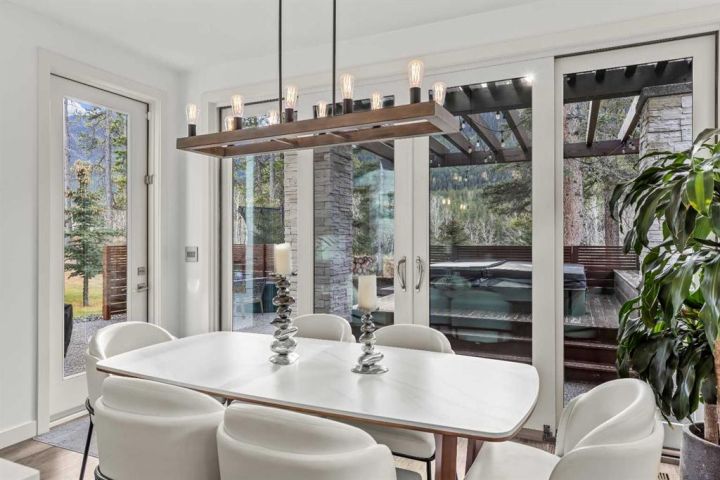Mountain-Modern Living on the 10th Hole of Stewart Creek Golf Course! Welcome to a rare offering in one of Three Sisters’ most peaceful and private enclaves .A stunning mountain-modern single family home backing directly onto the 10th hole at Stewart Creek Golf Course. Thoughtfully designed with function, style, and environmental consciousness, this 4-bed, 4-bath residence offers over 3,500 sq ft of refined living with beautiful natural light, warm timber accents, and a true connection to the surrounding landscape. Natural timber beams, soaring ceilings, and expansive windows create an inviting alpine aesthetic while framing select views of the golf course and mountains. Enjoy an unobstructed and private backdrop, creating a sense of calm and separation rarely found. A commitment to sustainability and safety elevates this home beyond the ordinary. Featuring solar panels for energy efficiency and Fire-Smart roof sprinklers, the property is designed for both modern living and long-term peace of mind. Inside, the open-concept main level seamlessly blends the chef-inspired kitchen, dining space, and living room, creating a bright and functional hub ideal for gatherings and everyday life. Your private backyard retreat completes the experience. A sunken hot tub, built-in fire pit, underground irrigation system, and thoughtfully landscaped yard offer a peaceful place to unwind after a day on the trails or the golf course. This is true mountain serenity — quiet, sheltered, and designed for year-round enjoyment.
