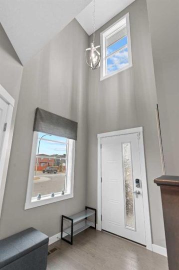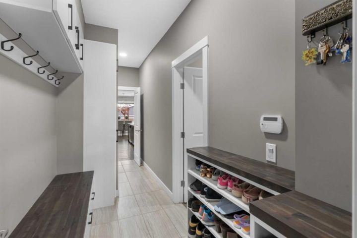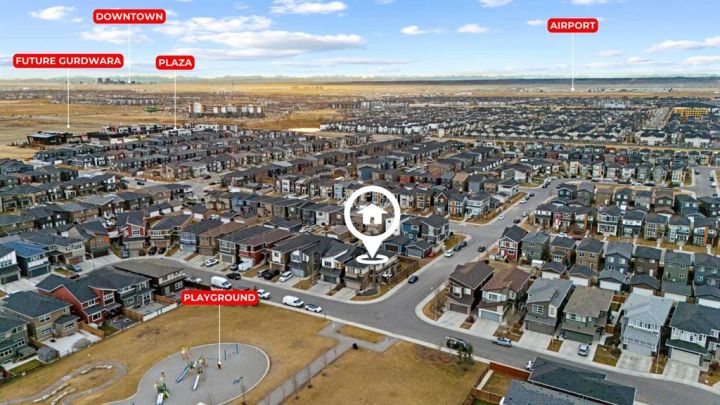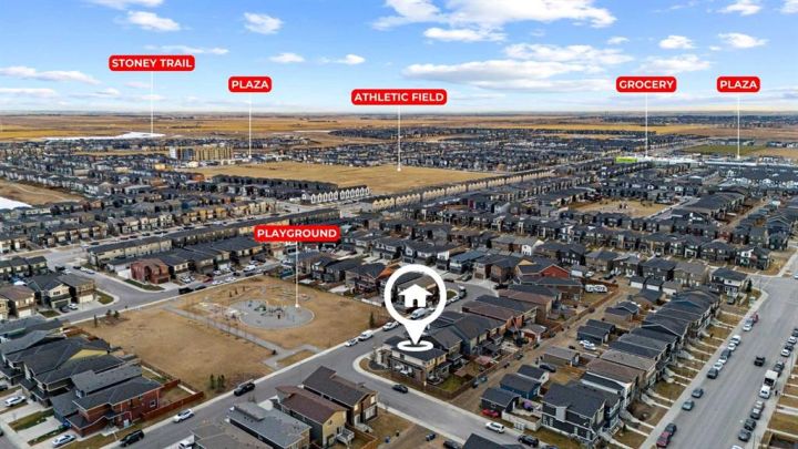 Welcome to this beautifully upgraded former Shane Homes SHOW HOME, perfectly situated on a quiet street and facing a kids playground in the heart of Cornerstone. Known for exceptional customization and craftsmanship, Shane Homes designed this property with thoughtful details throughout, making it truly feel like you are living in a show suite. This impressive home offers a double attached garage, four spacious bedrooms, two and a half bathrooms, and a newly developed two-bedroom LEGAL SECONDARY SUITE. From the moment you step inside, the grand entrance with high ceilings sets the tone for the elegance that follows. The main floor features a chef-inspired kitchen with built-in stainless steel appliances, custom cabinetry with crown molding, a large central island, and a walk-through butlers pantry with additional custom storage. A formal dining room, casual dining nook, bright and luxurious living room with a gas fireplace, functional mudroom, and a convenient two-piece bathroom complete the main level. Upstairs, the home opens into a massive family room that is ideal for gatherings or relaxing. Four generously sized bedrooms provide ample space, while the thoughtfully designed laundry room includes custom counters and cabinetry. The primary suite is a true retreat, featuring a spa-like ensuite with double vanity, a mirror extended to the ceiling, a stand-up shower, a relaxing soaker tub, and a large walk-in closet with custom cabinetry. The additional three bedrooms are bright, comfortable, and offer excellent closet space. The recently developed basement features a legal two-bedroom suite with its own full kitchen, stainless steel appliances, separate laundry, comfortable living area, and a three-piece bathroom, which is perfect for extended family or rental income. Additional upgrades include a water softener, water purifier, and central air conditioning, providing enhanced comfort and convenience year-round. Outside, the home sits on a desirable corner lot and includes a fully fenced and landscaped backyard with a large deck and pergola, creating an ideal setup for enjoying summer evenings. With the playground right across the street, this location is perfect for families seeking both community and lifestyle. Residents enjoy close proximity to Chalo Freshco, the future Gurdwara, the community pond, restaurants, schools, and several commercial plazas. Quick access to Stoney Trail and Country Hills Boulevard makes commuting easy, while CrossIron Mills, Costco, and the Calgary Airport are only a short drive away. This property is truly a must-see. Experience the quality, upgrades, and design that make this former show home stand out. Book your showing today.