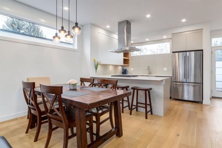 This 3-storey Townhouse by RNDSQR offers over total 2,290 sqft of well-designed, features open, bright, wide-plank hardwood, large windows, and a seamless flow from the living and dining area into a perfect kitchen with quartz counters, a gas range and high-end appliances on main level. On the second level, you'll see a comfortable primary bedroom with a 4-piece ensuite and walk-in closet, a second bedroom, a full 4-piect bathroom, and laundry area. Upstair on the 3rd level there's a bonus room which gives you the options for a home office, second living room, or converted into another bedroom. From there step out onto your private rooftop patio with views of Glenmore Athletic Park. The fully finished basement adds a third bedroom, full bathroom, and a rec space that works well as a guest area, gym, or cozy media room. You can access privately to the detached garage through your backdoor. Just steps from River Park, Sandy Beach, and Glenmore Athletic Park.