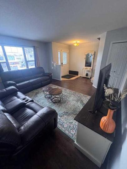 When location and walking distance is a priority this half duplex is located in a well-established neighborhood, close to the down town core and within walking distance to all the amenities, shopping, schools, medical center, numerous parks and play grounds. The home welcomes you with a bright and inviting living room that flows effortlessly into a functional galley kitchen featuring dark wood cabinetry and a large counter that not only gives plenty of work space but additional breakfast bar for extra seating. Entertaining dinner guest is a breeze in the dinning area as it can easily accommodate a large table with seating for six or more. Located at the back entrance you will find a 2 pc bathroom with convenience and easy access for main floor living that offer both comfort and practicality for a busy household or a visiting guest. The second level holds a generous primary bedroom and includes a walk-in closet, while the thoughtfully designed 4-piece main bathroom is surrounded by ample closets for extra storage. Two additional bedrooms, each with oversized closets, complete the upper level and provide plenty of space for a growing family. The unfinished basement offers excellent potential for future development, with roughed-in plumbing and a large electrical panel already in place to support additional living space. Back yard is fenced with convenient back-alley access and plenty of parking. This well-cared-for home combines location, functionality, and future potential to add value by developing the basement or add a garage , making it an ideal choice for any growing family.