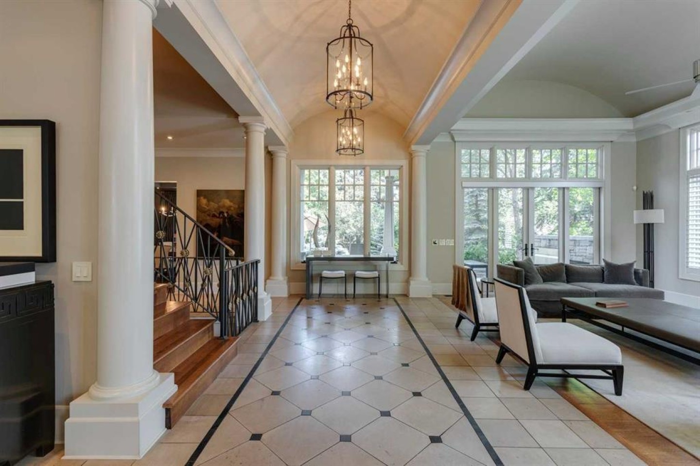 A residence of rare distinction in the prestigious community of Mount Royal. Designed by McDowell & Associates, this extraordinary estate embodies timeless architecture, enduring craftsmanship, & refined sophistication at every turn. Situated on an 80x161 ft (10,764 sq. ft.) professionally landscaped lot, this stately property offers over 5,822 sq. ft. of impeccably finished living space across three levels, featuring five bedrooms (note: basement bedroom has been converted to a large executive office) & six beautifully appointed bathrooms. From the moment you step through the grand foyer, the home reveals its pedigree - barrel vaulted ceilings through the foyer & living room, exquisite millwork, Loewen triple-pane windows & a harmonious blend of oak hardwood & honed limestone flooring. The formal living room is anchored by a gas fireplace with a marble surround, while the dining room exudes elegance beneath a statement chandelier. At the heart of the home lies the Empire-designed kitchen, outfitted with Sub-Zero, Wolf & Miele appliances, this culinary space offers inset cabinetry, granite counters, a large center island & countertop seating overlooking the private gardens. A mudroom leading from the garage & executive main-floor office with built-ins complete this level. The upper floor is a retreat of calm sophistication. The primary suite is an indulgent sanctuary, featuring a six-piece marble ensuite with steam shower, deep soaker tub, dual vanities & heated floors, alongside two custom dressing rooms. Three additional bedrooms, each with private marble ensuites, offer comfort & privacy for family & guests. The lower level continues the theme of understated luxury with a fifth bedroom (presently converted to an executive office with custom oak shelving & rolling ladder) & full spa bath with steam shower, a temperature-controlled wine room, private fitness studio (could be converted into a large family room). A spacious laundry along with ample storage provides functionality without compromise. The triple attached garage is as impeccably finished as the home itself - featuring epoxy flooring, built-in cabinetry, a slat wall organization system & hot/cold water lines for car washing or equipment care. Every element reflects the same meticulous attention to quality & design found throughout the residence. Outdoors, the professionally landscaped gardens form a private sanctuary of greenery & light, with limestone pathways, gas lanterns & multiple seating areas ideal for elegant entertaining with an intimate seating area in the garden surrounding a stone firepit. With in-floor heating, advanced mechanical systems & curated designer lighting throughout, this home offers enduring comfort & sophistication. Perfectly positioned within walking distance to The Glencoe Club, premier schools & the boutiques and restaurants of 17th Avenue & 4th Street SW, this distinguished Mount Royal residence represents the pinnacle of luxury living in Calgary’s most coveted neighbourhood.