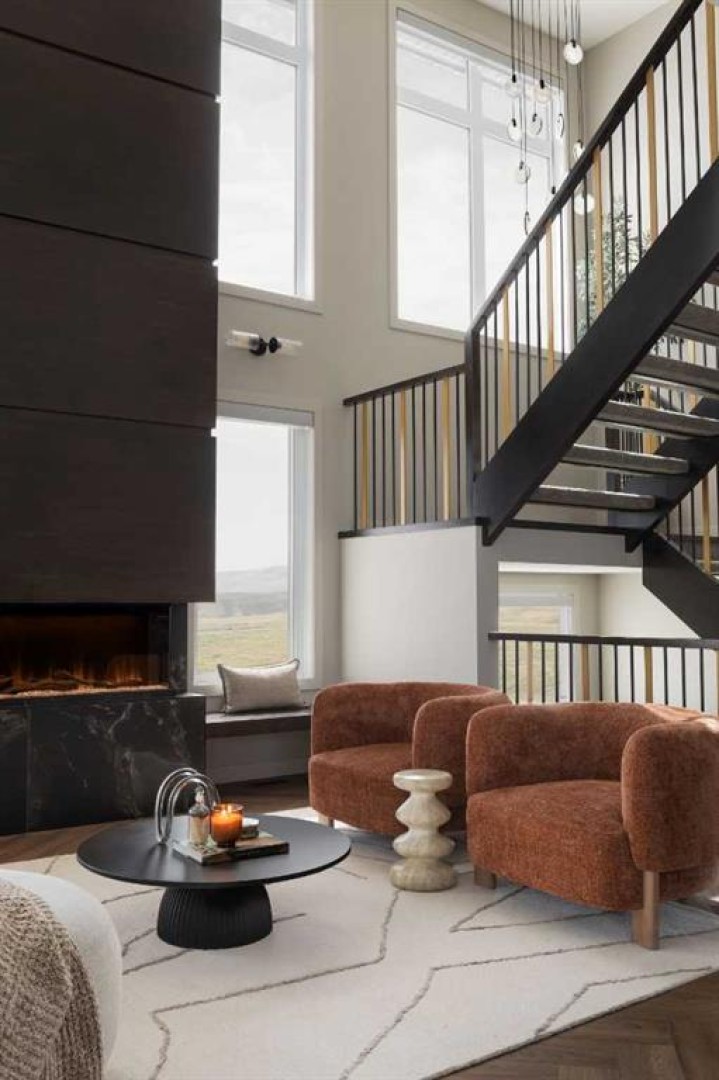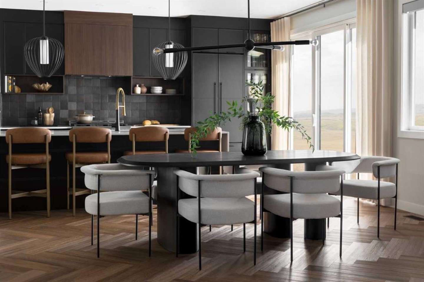 Purchase this extraordinary show home at today’s prices while benefiting from the leaseback program—a rare opportunity that blends investment savvy with exceptional design. This is more than a home; it’s a lifestyle experience. Offering just over 5,000 sq. ft. of meticulously designed living space, every detail has been crafted with one purpose: living beautifully. Step inside to elegant herringbone flooring, where natural light floods the home from every angle. The kitchen is a true statement of elevated design, featuring modern yet inviting cabinetry, refined porcelain countertops, a full spice kitchen, and chef-grade appliances that make even daily rituals feel indulgent. The main level is anchored by a spacious great room highlighted by a dramatic two-storey walnut fireplace feature—equally suited for hosting unforgettable gatherings or enjoying quiet evenings at home. A main-floor bedroom and formal sitting room complete this level with thoughtful versatility. Upstairs, the primary retreat is a serene escape. The spa-inspired ensuite offers heated tile floors, a steam shower, and a generous walk-in closet, complemented by expertly curated custom built-ins. Three additional bedrooms—one with a private ensuite—along with a separate full bathroom and a tucked-away bonus room create a perfectly balanced upper floor. The fully finished basement elevates the lifestyle even further, featuring an expansive recreation room, sleek wet bar, private gym, and an additional guest suite. Whether it’s a cocktail evening, game night, or extended family stay, this level is designed to host it all with ease. Throughout the home, custom woodwork, designer lighting, and luxurious finishes set this show home apart. Add to that an attached three-car garage and a prime location offering small-town charm with quick access to Calgary, and you have convenience without compromise. This isn’t just a show home—it’s the new standard for luxury living in Balzac.