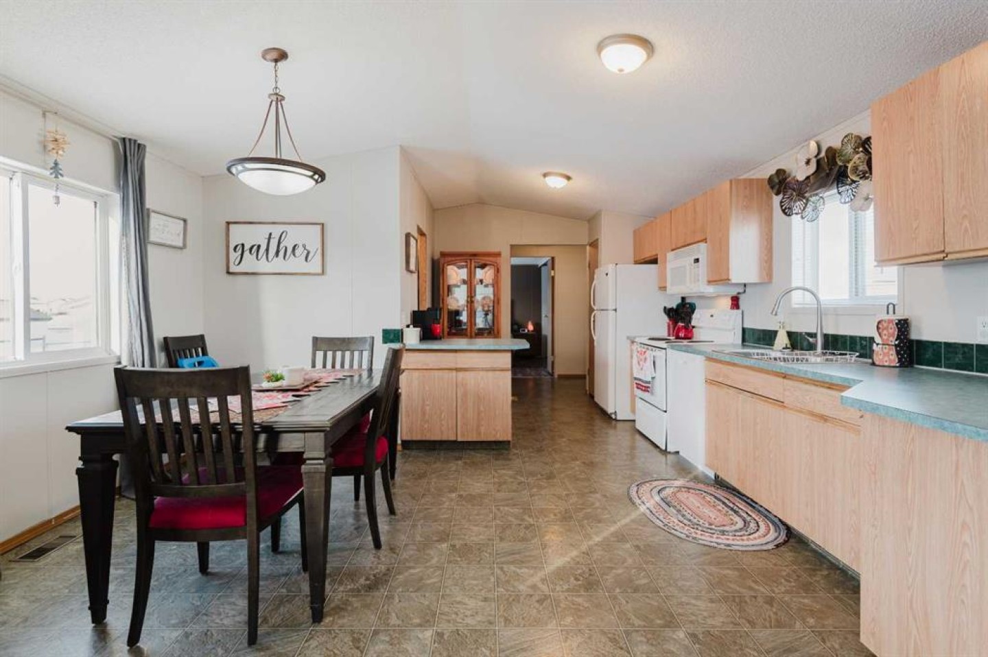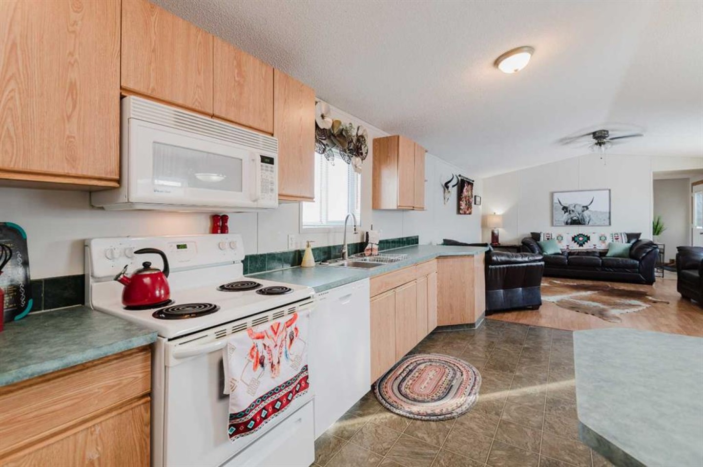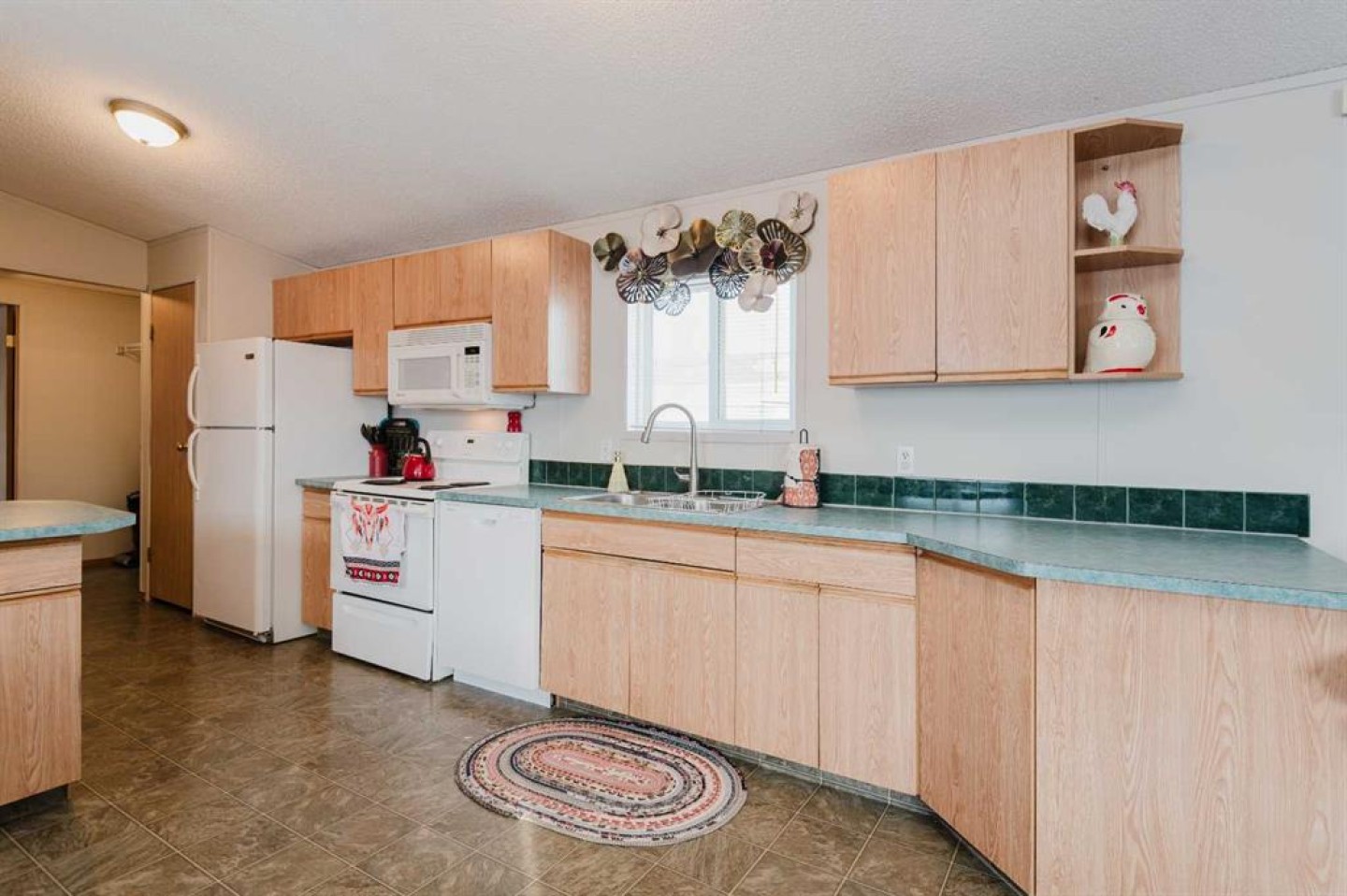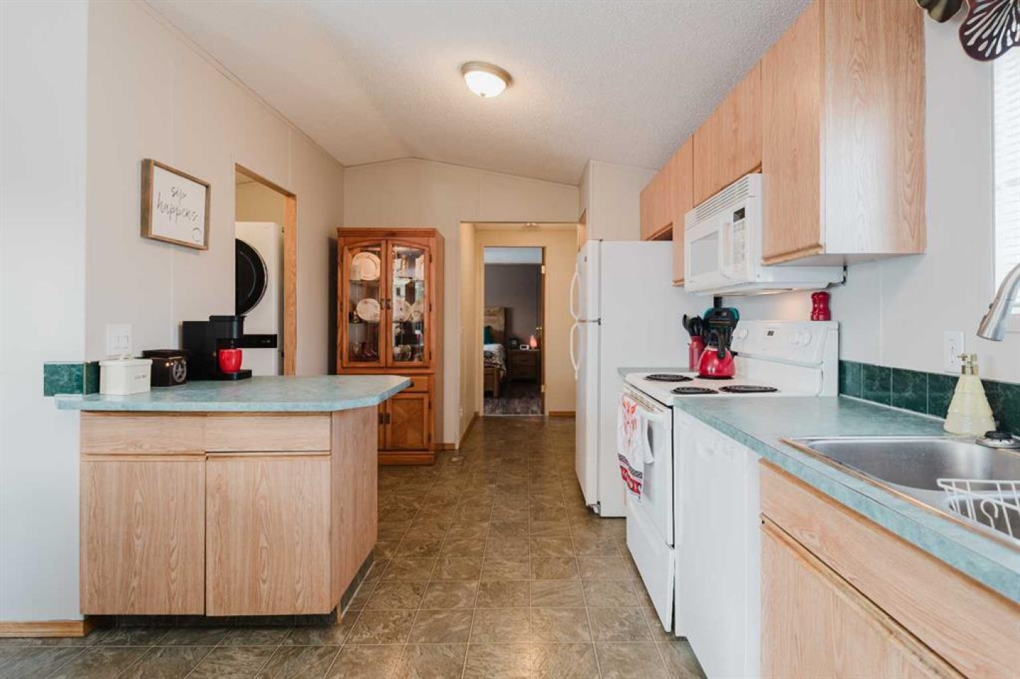 Welcome to this charming mobile trailer located in Clairmont on an owner-owned lot of 6,620 sq ft. Offering 1,216 sq ft of comfortable living space, this home features an open floor plan with two entrances, perfect for easy access and flow. Inside, you’ll find 3 bedrooms including a spacious primary bedroom complete with a 4-piece ensuite bathroom for your privacy and convenience. The home boasts 2 full bathrooms in total, accommodating family and guests comfortably. This home shows pride of ownership and has been nicely maintained throughout. The kitchen is updated with a brand-new dishwasher and is open to the living area, creating a warm and inviting space for gatherings. Laundry is a breeze with a newer, large-capacity stacked washer and dryer set, capable of handling bulky items like a king-size comforter. Step outside to enjoy two decks—ideal for relaxing or entertaining—and a completely fenced yard, providing privacy and a safe space for children or pets. The backyard backs onto a school, offering a peaceful and open view. This property combines the benefits of mobile home living with the advantage of a large, owner-owned lot. Don’t miss this opportunity to own a well-maintained, move-in ready home in a great location!