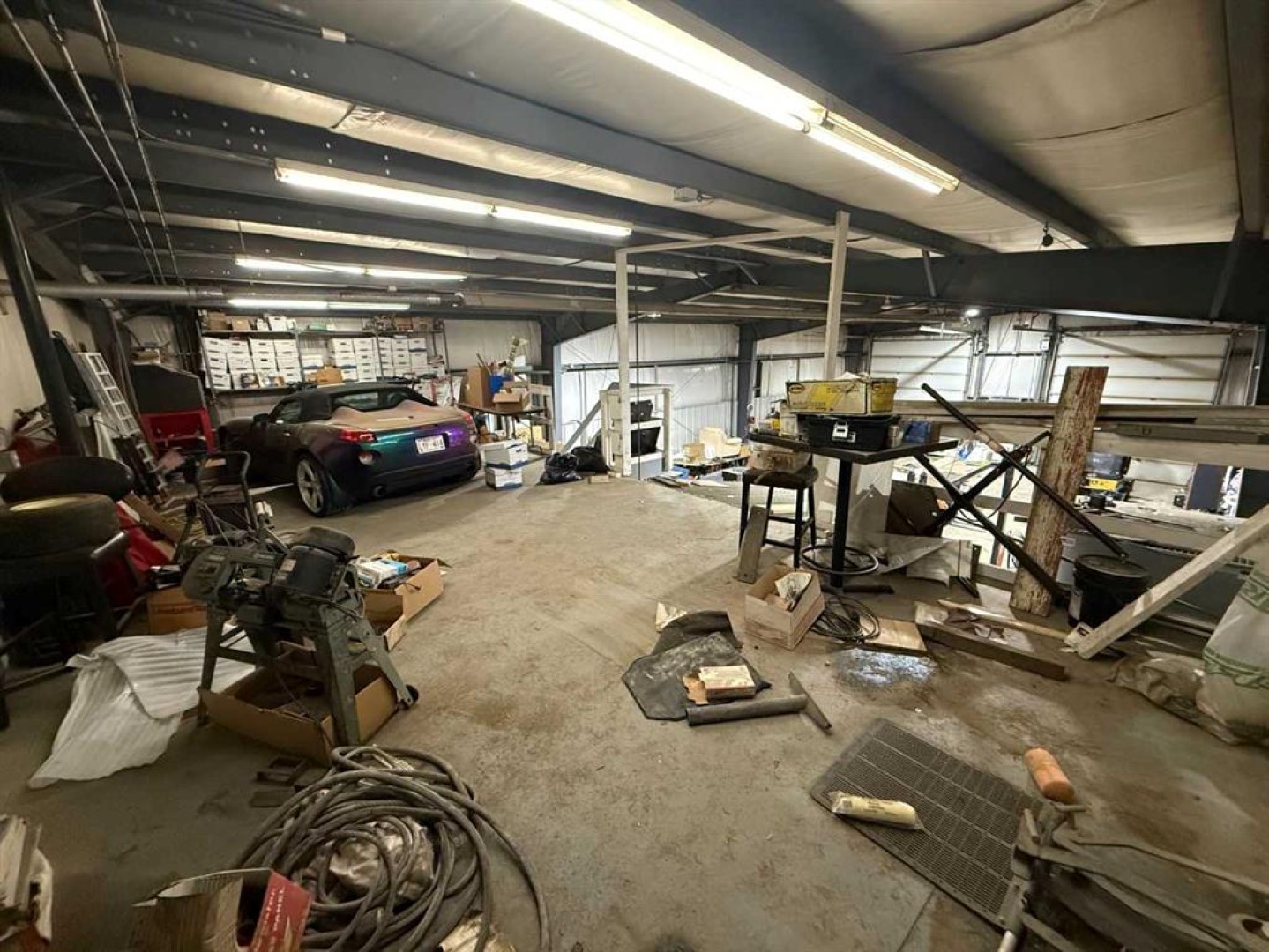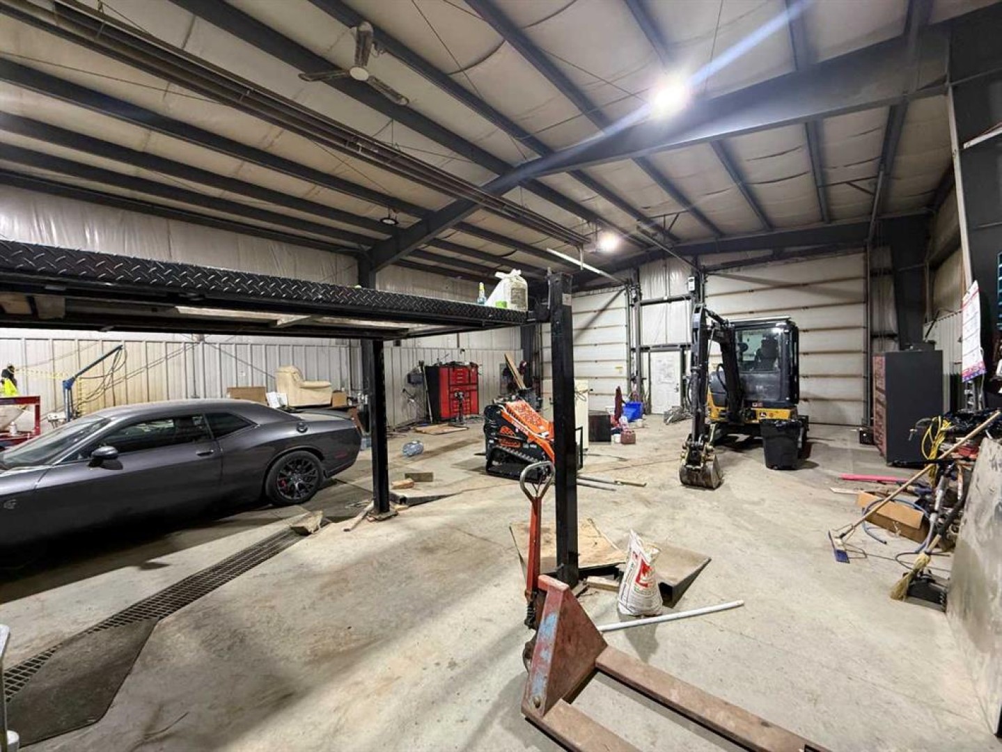 Barn is 30 x 24 garage is 40 x 24 shop is 40 x 75 18 foot high ceilings 14 foot overhead doors Mezzanine 40 x 16 Pole hay shed 45 x 17