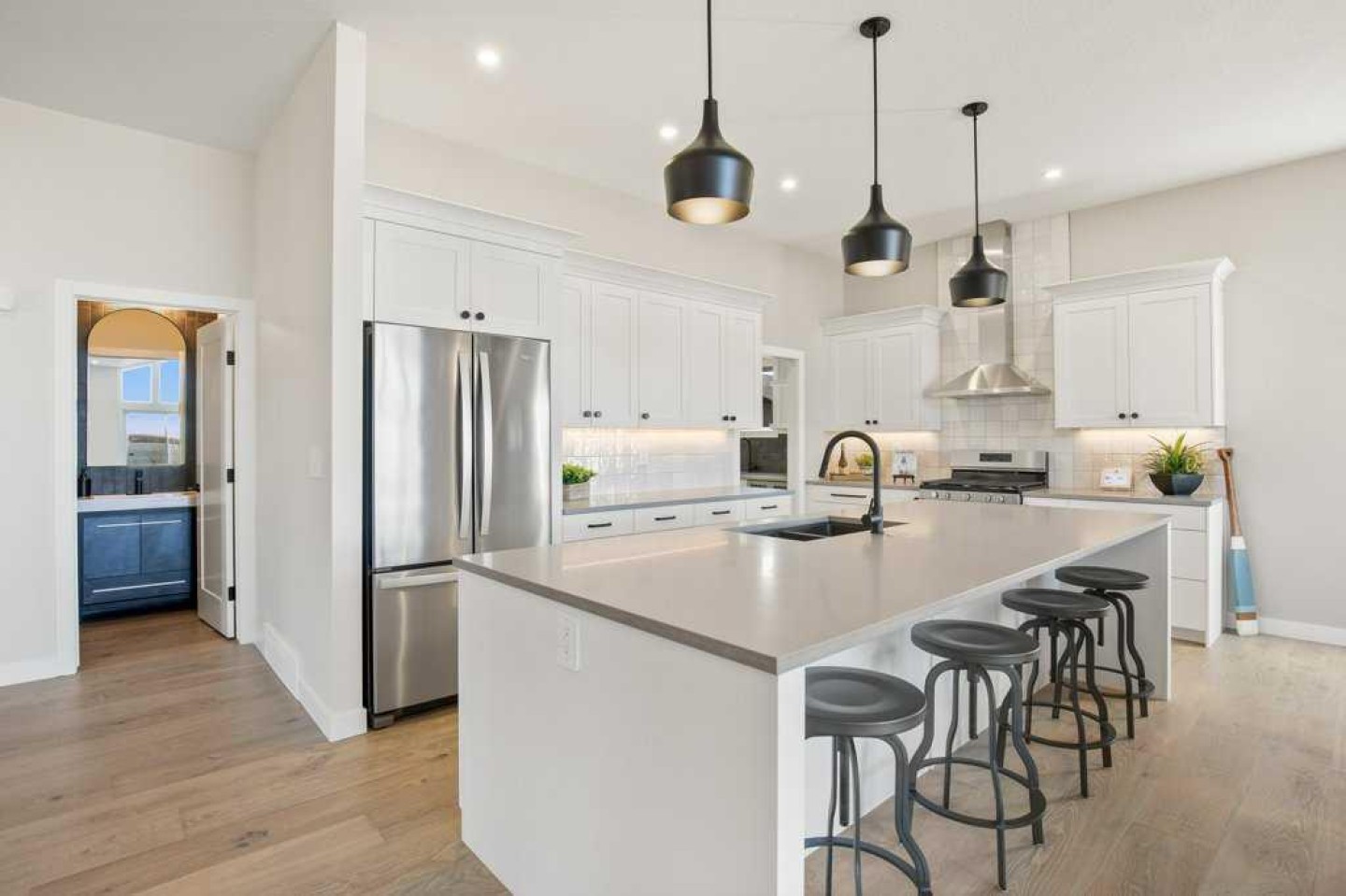 Lakefront is Calling! Welcome to this beautiful, brand new 1,767 ft ² (3,079 ft² fully developed) bi-level custom lakefront home nestled on a .25 Acre fully landscaped lot in the new exclusive Twin Rose neighborhood, in Jarvis Bay, on the sunny side of the shores of Sylvan Lake. Now is your opportunity to live on the lake! This charming community offers a natural setting with manicured walkways leading down to a beautiful private dock featuring your own boat slip. Imagine just a short walk to your boat for fishing, water sports, swimming, or just playing at your beautiful private beach. This home features a fantastic, functional floor plan with an abundance of upgrades throughout. The handsome hardy board exterior is adorned with timber frame beams and stone accents, providing that perfect lake feel. The unique triple car garage offers plenty of space for your cars and toys, featuring a 12 ft. ceiling allowing for a car lift or additional storage. Greet guests at your door beneath the covered veranda leading them to the spacious entry. The stylish, curved stairway precedes the airy, open upper floor plan. You will be captivated by the main living area, with a vaulted ceiling and stunning view through the wall of sliding glass doors. The kitchen features modern cabinetry with many enhancements, an expansive island complete with quartz countertops, and top-of-the-line appliances. Enter through your garage and enjoy easy access through the butler’s pantry/laundry room/coffee center. The great room provides a cozy space for relaxing or entertaining in front of the beautiful gas fireplace, while taking in the views of Sylvan Lake. The dining room anchors the space with ample seating for get-togethers with family and friends. Dine inside or step out onto the expansive 450 ft² deck with glass railings and soak up the warmth of the west-facing sunshine. Sip a glass of wine while appreciating the famous Sylvan sunsets. At the end of the day, escape to the spacious main floor master suite. Boasting a walk-through closet and a luxurious 5-piece ensuite with his and hers vanities and sinks next to the gorgeous glass-enclosed shower. The curved staircase leads you down to the lower level. The large family room offers a fabulous space for hanging out with friends or cuddling up for movie nights. Entertain with ease at your wet bar, which compliments an eye-catching sit-up island and wine cellar. Enjoy the additional laundry appliances on this level for the convenience of your company or family members. In addition, there are two bedrooms both featuring their own 4-piece ensuite! The fully landscaped lot features an underground sprinkler system, allowing you to enjoy your lake property with less upkeep. Time is ticking…take a look while Twin Rose lots are still available. Other lots with varying price points available.