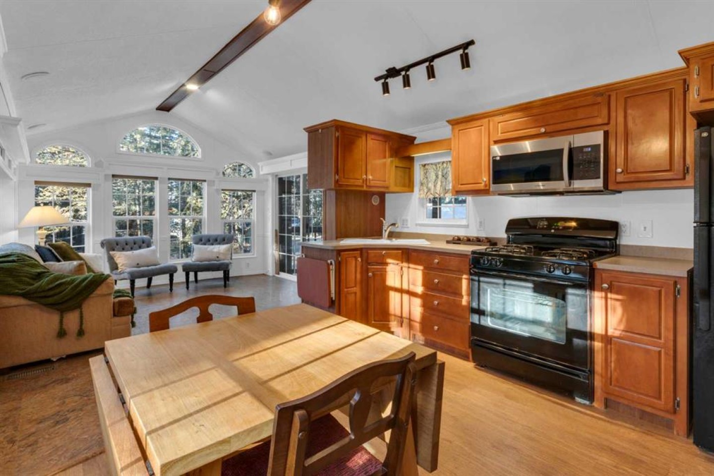 Electric Water Heater, Gas Range, Microwave Hood Fan, Refrigerator, See Remarks, Window Coverings