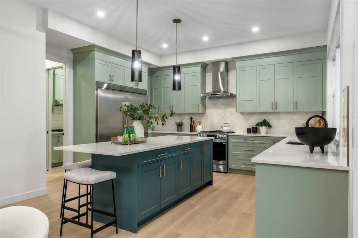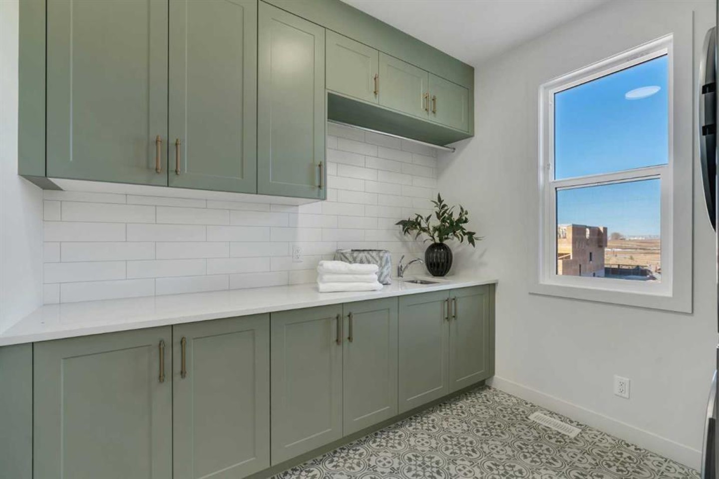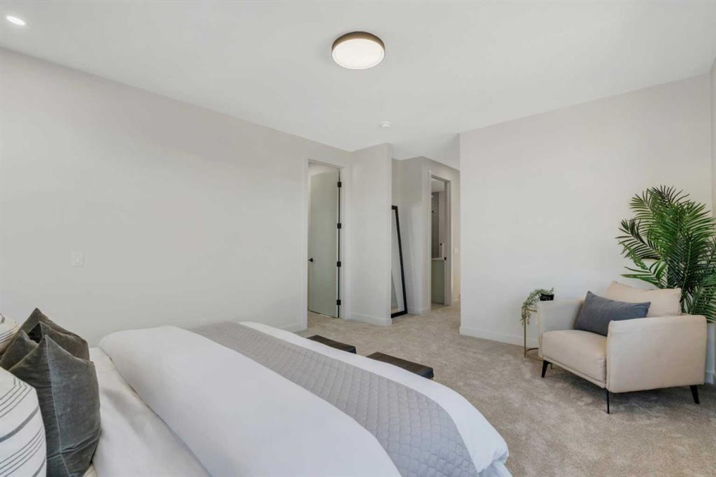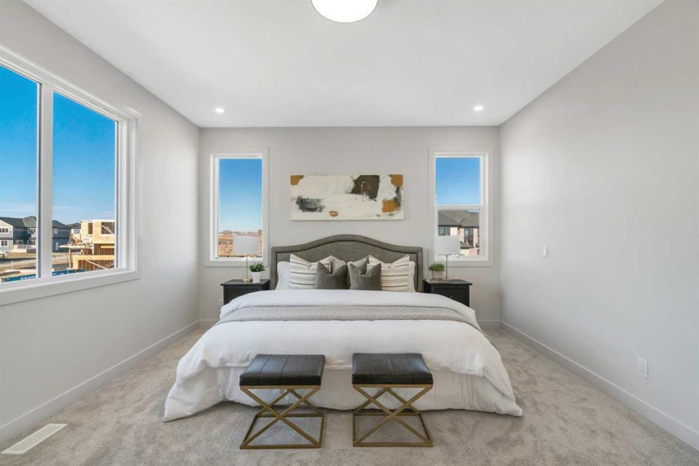 Watch the Video* OVER 4200 SQFT of living space & Under $1.4 Million! A luxury estate home that truly checks every box. This stunning showpiece by Aspen Creek Designer Homes, Alberta's one of Alberta's premier luxury builder showcases exceptional craftsmanship & stellar elevated finishings. Located in the growing estate community of Goldwyn, this home offers the charm of prairie estate living with breathtaking pond, downtown, & mountain views — Perfectly situated on a quiet cul-de-sac & no neighbours behind. This gorgeous home redefines what elevated high-end living should look like. Offering over 4,200 SQFT of functional living space, this residence is designed to impress at every turn. Triple Garage | 5 Bedrooms + Main floor den | 5 Full Bathrooms | South Backyard | Pond Views| Excellent Finishings | Stunning Chef's Kitchen | Spice Kitchen | Spacious Backyard | 3 Spacious Bedrooms up with Ensuites | Bonus Room with Private Balcony | Finished Walkup 2 Bedrooms Basement | Hardie Board Siding The expansive triple garage along with aggregate driveway create a striking first impression. Step through the grand double-door entrance into a soaring open-to-below foyer filled with natural light. The main floor features 10-foot ceilings, 9 Ft doors, oversized windows, & a spacious living room with an elegant tiled fireplace detailing. A magazine-worthy, state-of-the-art chef’s kitchen offering that aura your guests are going to love - timeless cabinetry with gold hardware, glossy backsplash, top-of-the-line appliances including an oversized refrigerator, gas cooktop, chimney hood fan, & built-in microwave. A massive centre island with blue cabinetry provides the perfect gathering space, while the fully equipped spice kitchen adds both style & function. A versatile main floor den with a French glass door sits beside an upgraded full bathroom— ideal for guests, multigenerational living, or a private home office. A generous mudroom offering ample space for a secondary home office. Walking upstairs along the grand wide staircase with designer railing, you'll notice the 9 FT ceilings & 8ft doors followed by a sun-filled central bonus room opens onto a private balcony overlooking the pond. Three spacious upstairs bedrooms each feature their own private ensuites - no compromises whatsoever. The primary suite is a true retreat, enhanced by extra windows, a huge walk-in closet, & a luxurious spa-like ensuite complete with a soaker tub, glass shower with upgraded tile surround, dual sinks, & a private toilet. The two additional south-facing bedrooms enjoy stunning pond views & upgraded attached bathrooms, offering comfort & privacy for family or guests. A massive laundry room with cabinets and tiles Step outside to a huge south-facing backyard that feels like a private summer retreat - ideal for entertaining & relaxing with your family. Dual Furnace Zoning & 72 Gal HWT adding to the efficiency. This home presents an great opportunity to own a modern home with astonishing views.