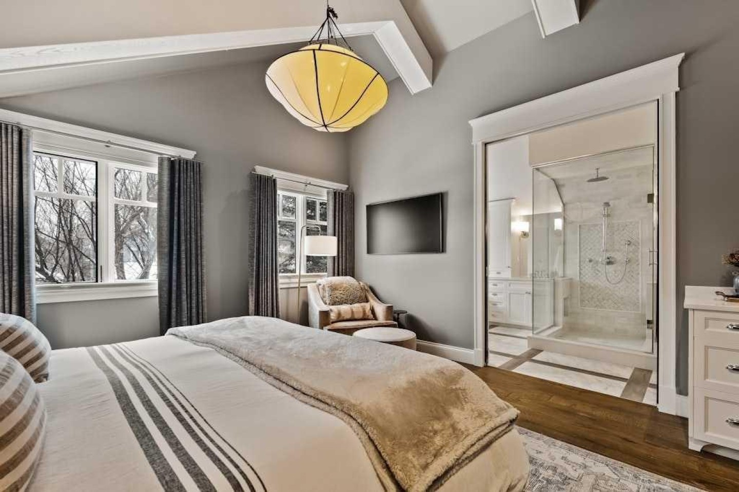 SOLD UNCONDITIONALLY...AWAITING DEPOSIT. The perfect family home—beautifully designed and ideally located. With the park and community centre just steps away at the end of the block—offering skating, tobogganing, tennis, basketball, and an off-leash dog park—this location truly delivers year-round enjoyment. Also close to top schools, the Glencoe Club, the river pathway system and walking distance to the 4th Street Village. Rebuilt from the studs in 2015/2016 by luxury builder Stonebridge Homes, this residence is effectively a new home, offering a total of 3,297 square feet of charming and thoughtfully curated living space with 4 bedrooms and 4.5 bathrooms. Exceptional curb appeal welcomes you with Hardie board siding and sandstone accents. A rebuilt 6' x 24’ front porch complete with a gas heater is an inviting retreat for morning coffee or evening wine. Inside, the generous foyer features a double closet and two benches. The open-concept main level showcases 9’ ceilings, expansive new windows, custom window coverings, oak plank hardwood floors, and outstanding millwork throughout. The living room is anchored by a double-sided gas fireplace, built-in shelving and dedicated location for a TV. A built-in dining banquette maximizes seating. The stunning chef’s kitchen is equipped with top-of-the-line appliances, a custom hood fan, a large island with seating at the extended counter and great storage. At the rear, a well-designed mudroom offers lockers, a bench, pantry, broom closet, and a discreetly positioned two-piece powder room with inlaid tile flooring. A private den/office off the foyer—complete with pocket doors and shared fireplace access—creates the perfect adult lounge or work-from-home space. A spectacular custom open staircase leads to the upper level. Vaulted ceilings throughout the upper level enhance the sense of space. Hardwood floors run throughout the bedrooms. The primary retreat features a generous bedroom, a luxurious five-piece ensuite with soaking tub, walk-in shower, dual vanities, and private water closet, along with an expansive walk-in closet. Each of the two additional bedrooms includes its own ensuite and walk-in closet—ideal for growing families. Full laundry room with sink and storage and a large linen closet also on this level. The fully developed lower floor offers a cozy family room with a sliding feature wall with mount for TV, a wet bar with wine fridge, beverage fridge and a dishwasher, a 4th bedroom with Murphy bed and two storage areas. High performance mechanical including central AC for summer comfort. As the house is positioned forward on the lot, the rear yard is generous and enjoys a sunny, west exposure. The low-maintenance landscape includes a stone patio, artificial turf, raised beds for vegetables/flowers and a flame table. The 22’ x 22’ garage has an exceptional storage system.