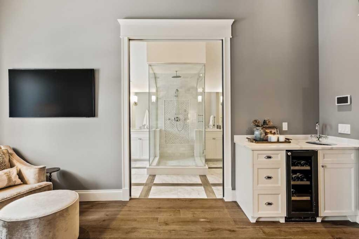 Bar Fridge, Built-In Refrigerator, Central Air Conditioner, Dishwasher, Dryer, Garage Control(s), Gas Stove, Microwave, Range Hood, Washer, Window Coverings, Wine Refrigerator