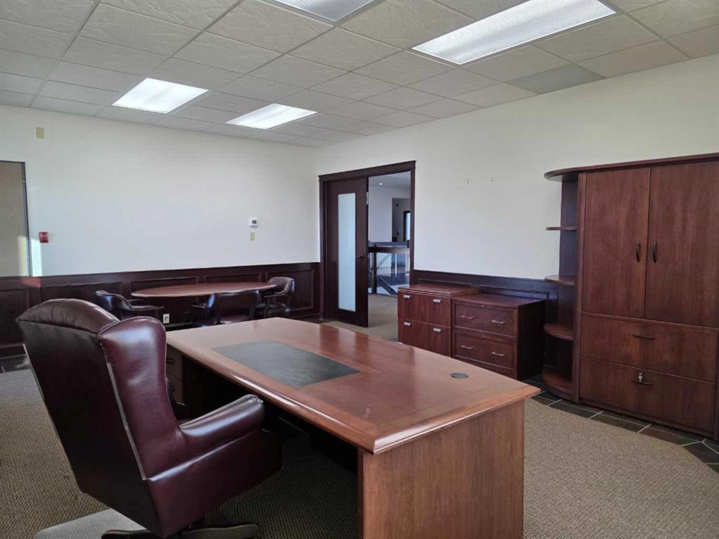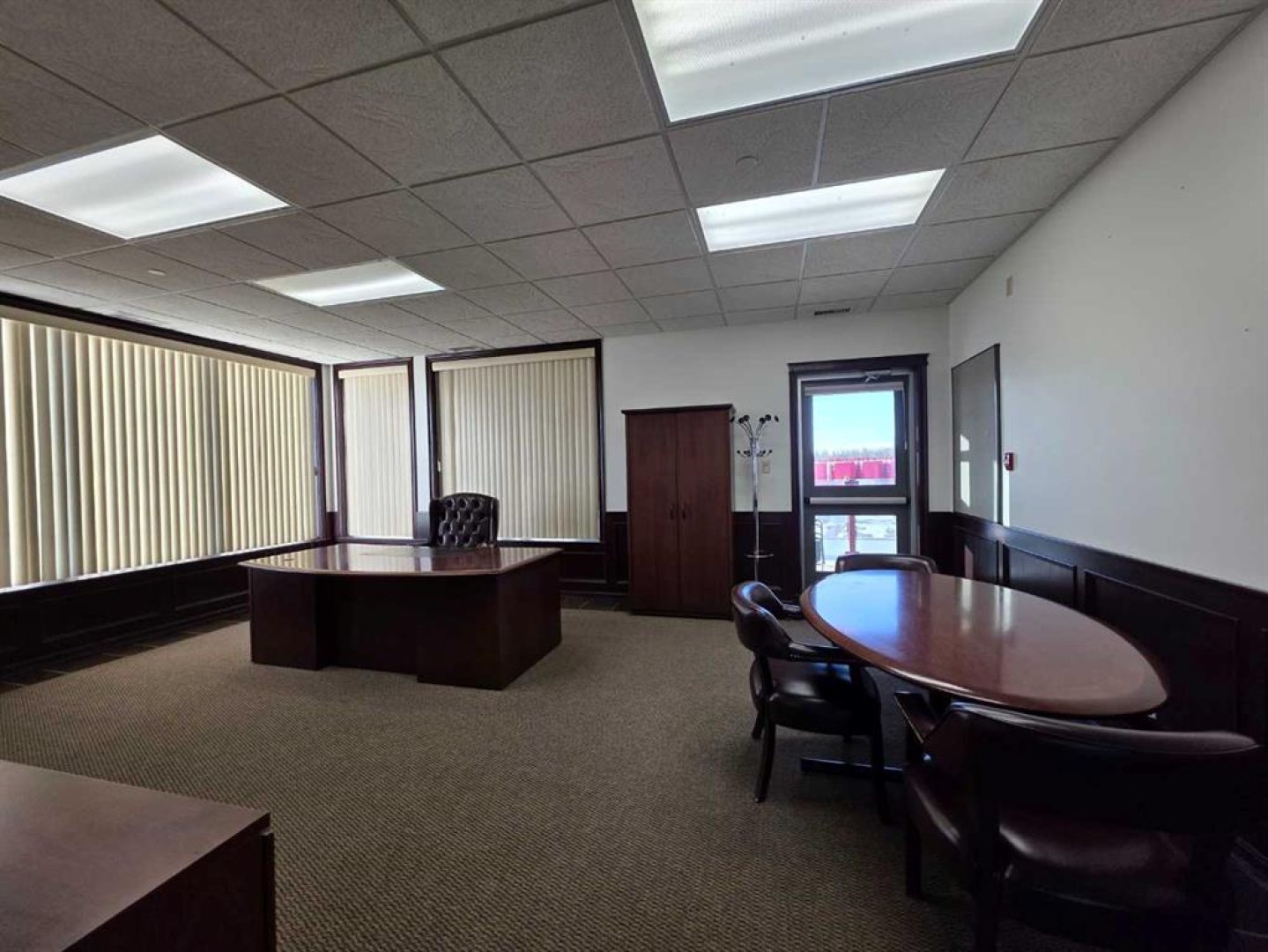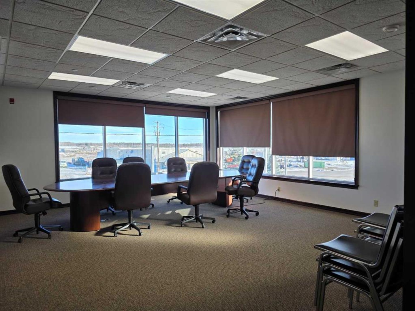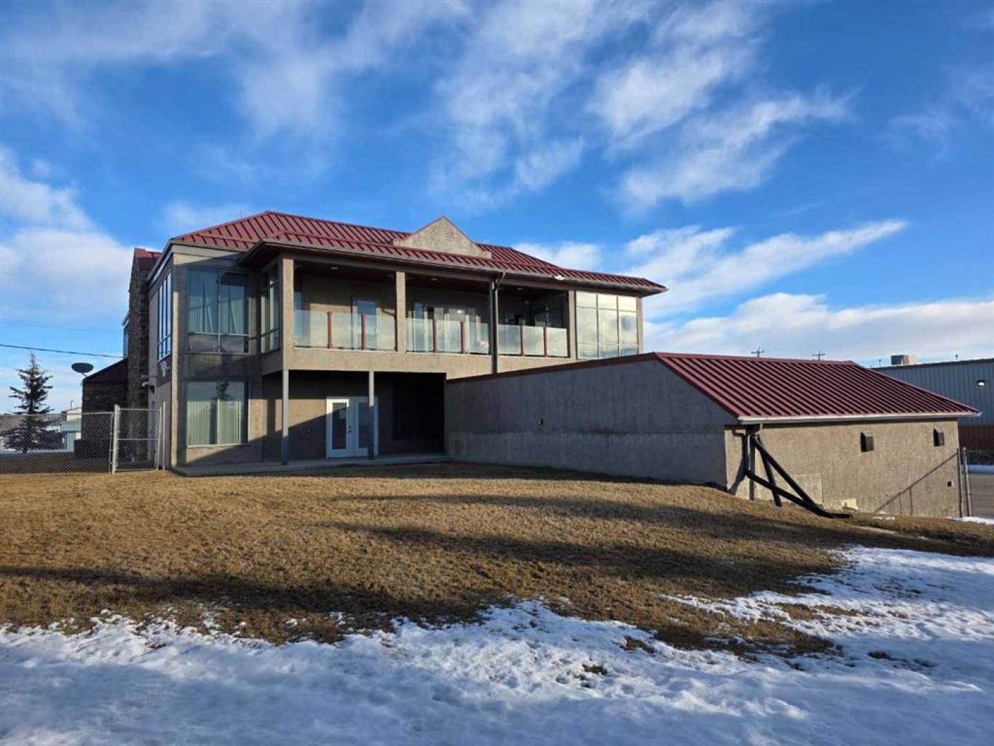 This striking two-story office complex boasts a functional full basement and a heated garage with three bays. The main floor features a welcoming reception area that is surrounded by 9 offices, a lunchroom with a kitchenette with access to patio, storage room, mens and womens washrooms. Upstairs, you'll find a boardroom equipped with a kitchenette, more offices, storage room, mens and womens washrooms. The offices on the upper level include two executive offices and a room with vaulted ceiling that all offer access to a balcony. The basement is designed for functionality, featuring a spacious crew meeting room with a kitchenette, an exercise area, restrooms with showers, a large fireproof vault, a mechanical room, and ample storage space. The heated garage is conveniently accessible from within the building, and there is paved parking available. Ideally situated in Brazeau County, on the western edge of Drayton Valley, the property is close to all local amenities. The back portion of the lot serves as an open, unserviced fenced storage area that has been rented separately from the office and is currently on a month-to-month agreement without a written contract. . The office has a leasing potential of $25,000 triple net per month, and the seller is open to considering lease offers