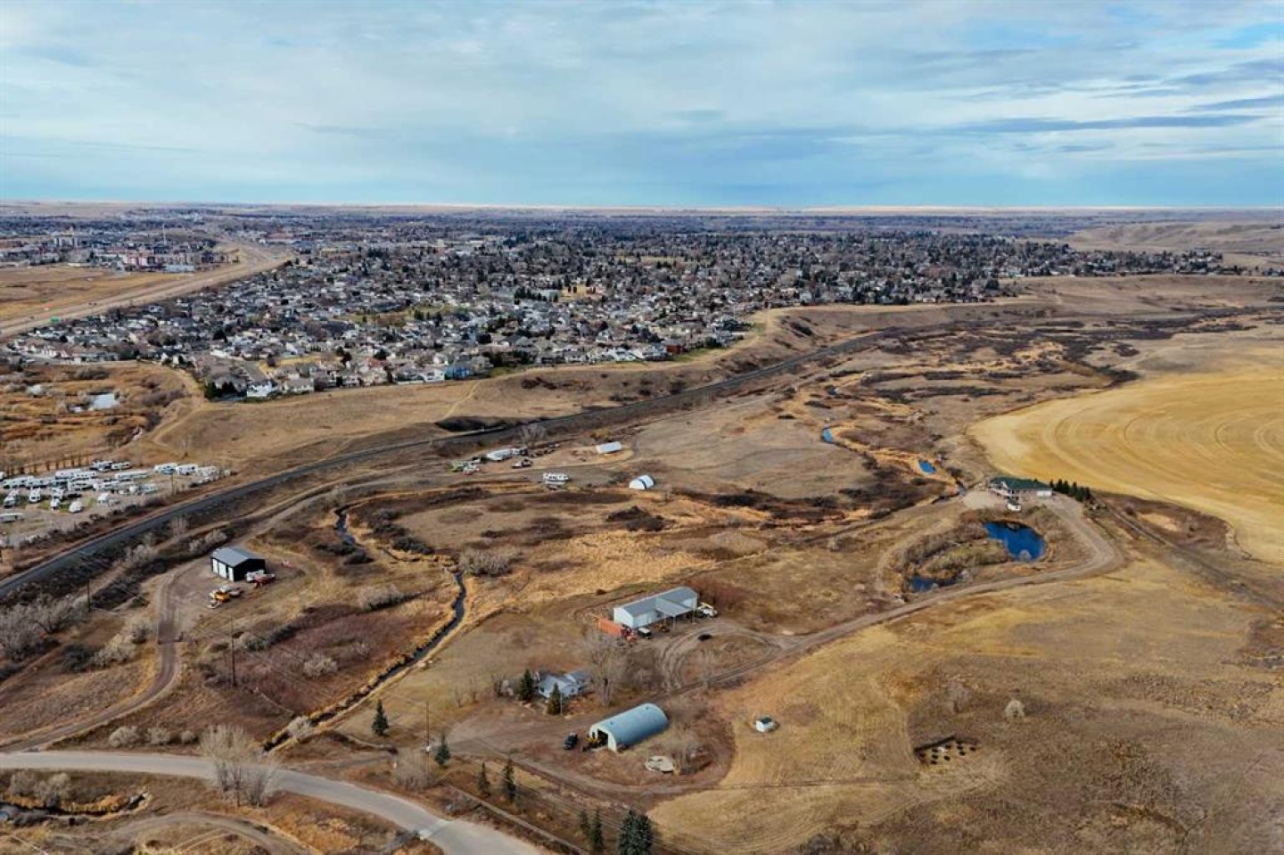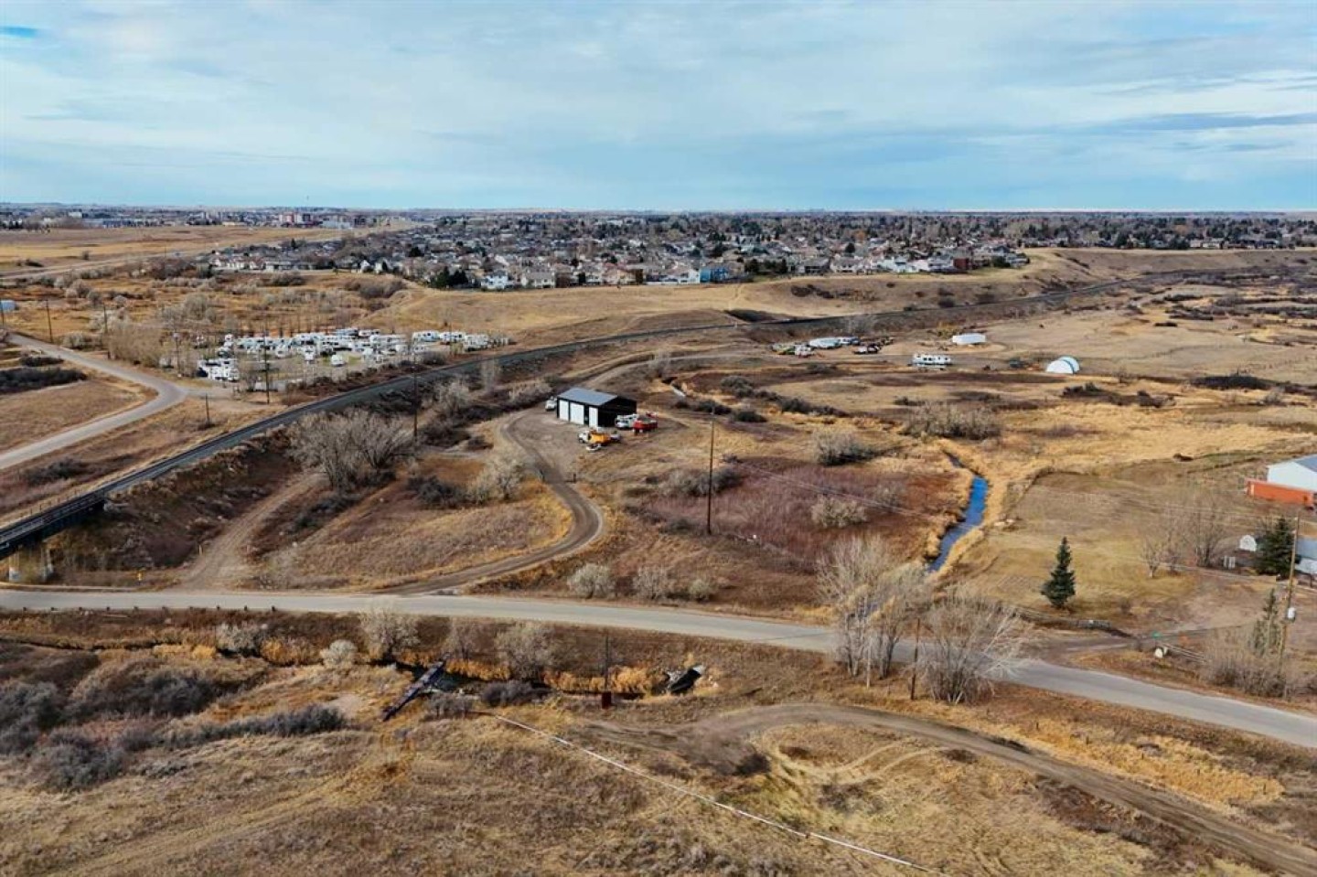 Discover the perfect blend of space, functionality, and opportunity on this impressive 28.92 acre property. Whether you’re looking to expand business operations, store equipment, build your dream home, or invest in land with serious potential, this property checks all the boxes. Completed in Fall 2025, the newly built 60' x 40' shop is designed for versatility and efficiency. Featuring four 16 ft bay doors including two drive through bays it offers seamless access for large equipment, vehicles, or commercial use. The shop boasts an 18ft ceiling height, a durable metal roof and siding, and is fully wired for power and ready to finish to your needs. Services are conveniently located at the property line, giving you flexibility for future development. The land is fenced with a combination of fencing styles, a creek running though and includes a gated entrance for privacy and security. With ample land, a brand new shop, this property presents an exceptional opportunity with permitted uses being home based business with office use, green house, bed and breakfast, agricultural, secondary suite to name a few with numerous discretionary uses including breweries, government services, group home, agricultural operations- commercial the list goes on.