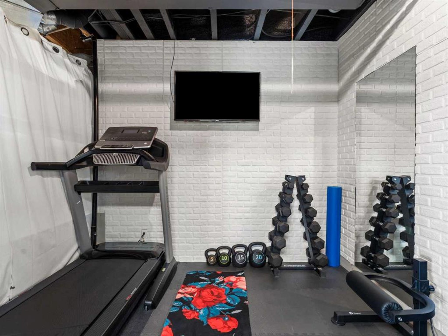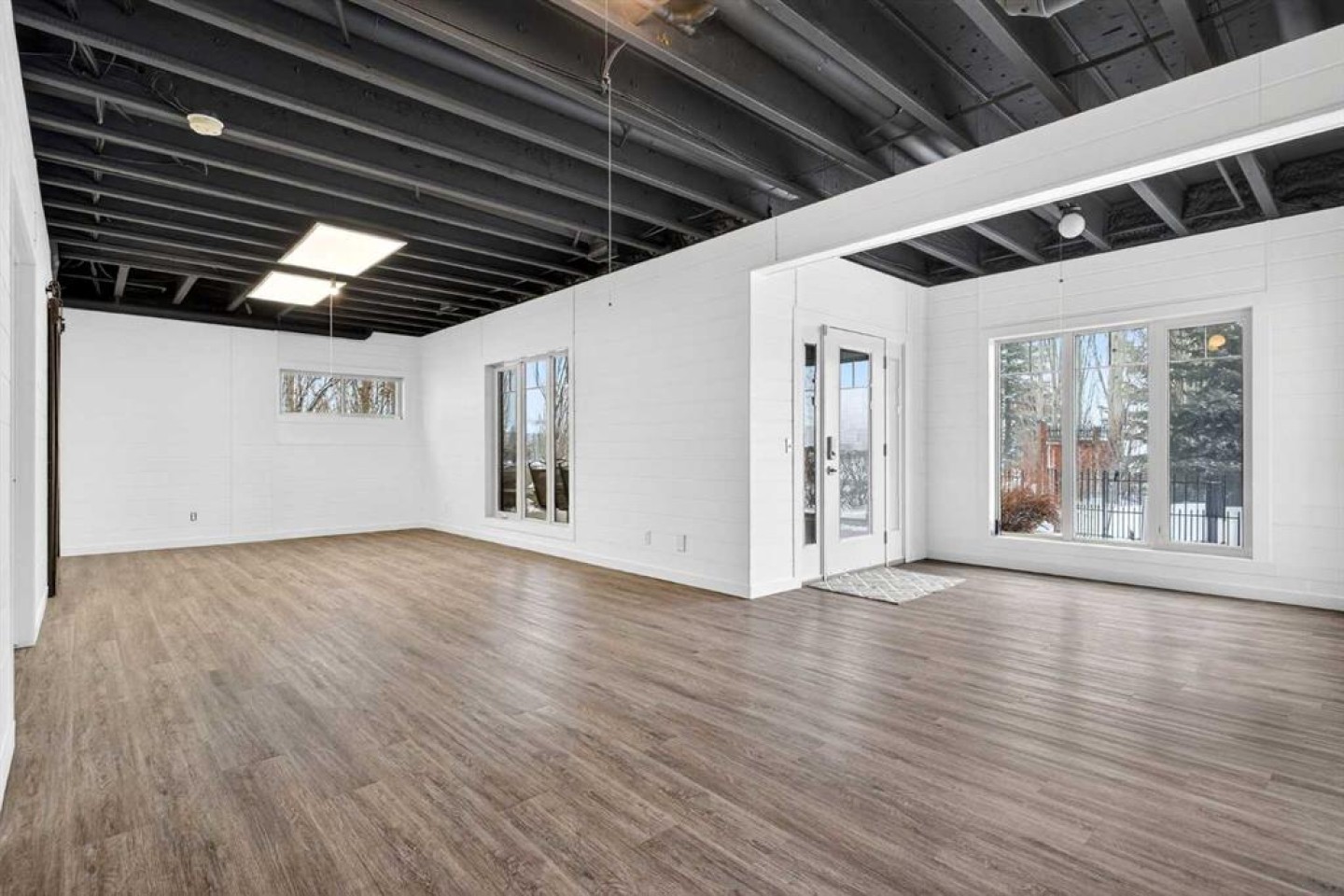 Office cabinetry, floating shelves in office, pipe shelves in basement, mirror in gym, mirror in back hall, insulation and metal cladding for shop, speakers, shed