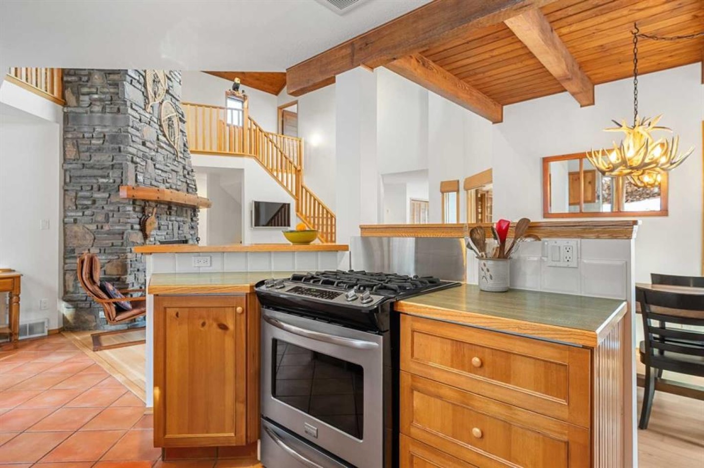 Tucked into one of Canmore’s most sought-after neighbourhoods, Rundleview offers quiet streets, mountain views, and easy access to Quarry Lake and the Nordic Centre—just a 1.5 km walk to downtown. This established enclave is known for its larger lots, mature trees, and direct connection to trails, making it a favourite for those who value both privacy and proximity. With an alpine feel and nearly 3,000 sq ft of living space, this home features 4 bedrooms, a walkout basement, expansive decks, and seamless outdoor access from all three levels. An extra-long driveway provides ample parking, including space for an RV, in addition to the attached garage. Designed to embrace its surroundings, enjoy morning sun from the northeast-facing front deck, then follow the light as it wraps around the side and into the backyard. End the day with a soak in the hot tub après-ski, surrounded by mountain air. Step into the heart of the home where a dramatic two-storey stone fireplace anchors the great room, framed by windows and natural light. The open layout creates effortless flow between living, dining, and kitchen spaces—ideal for everyday living and entertaining. The kitchen overlooks a cozy dining nook with patio doors leading to a wraparound side deck, perfect for BBQs and gatherings. A main-floor office or guest bedroom offers flexibility for visitors or work-from-home needs. Upstairs, two additional bedrooms with private balconies and a loft area provide separation and space for family or guests. The tiled lower-level entry is designed for practical mountain living, complete with a drop zone for gear, a fourth bedroom, and direct garage access. The fully developed walkout level also features a generous rec room with a cozy gas fireplace and plenty of space to entertain. Mechanical systems have been updated, and the durable metal roof adds long-term peace of mind. Inside, the home shows pristine with newly refinished hardwood floors and fresh paint throughout. A rare opportunity to experience timeless mountain living in one of Canmore’s most desirable neighbourhoods.
