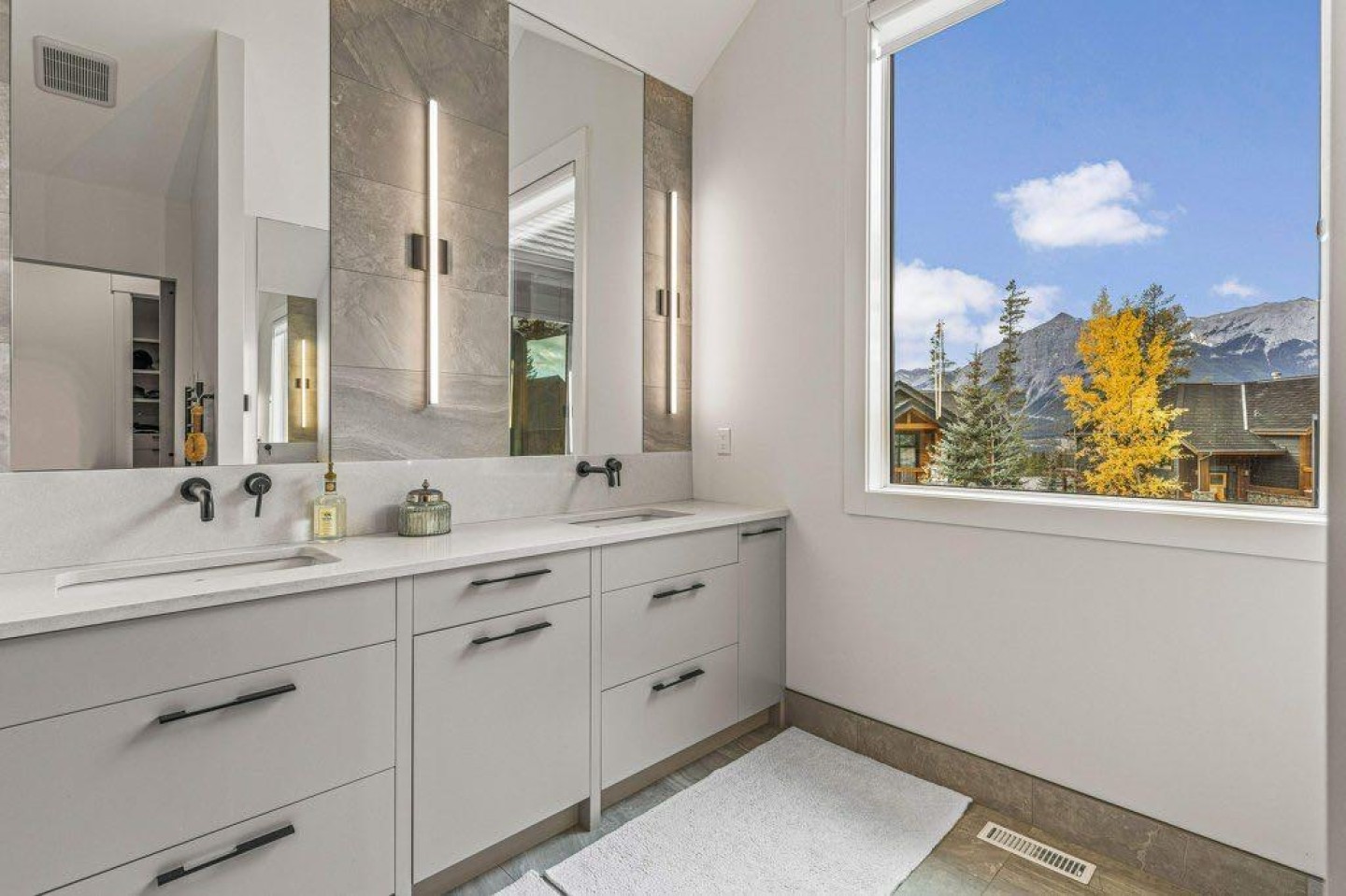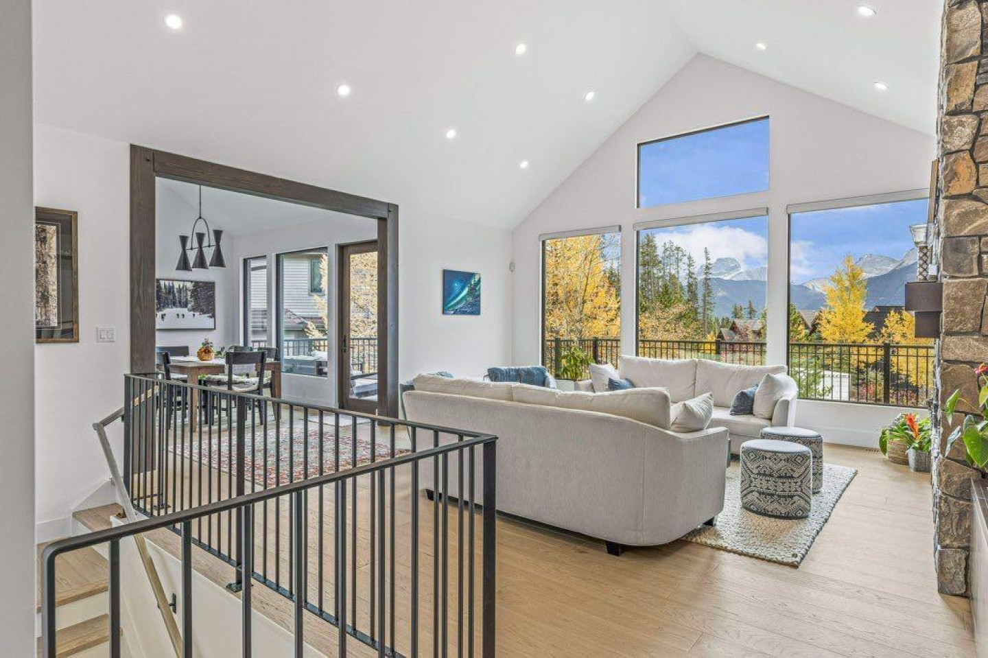 One of the Highest Elevated Homes in Canmore! Perched in the heart of the prestigious Silvertip community, this remarkable 4 bed 4 bath home redefines contemporary mountain living. Boasting an expansive 13,119 SF Lot, this property is only 6 yrs old. Prepare to be captivated by the unparalleled panoramic views from literally every window from this 3,418 SF all above grade home. The stunning 3 Sisters becomes an integral part of your daily life, visible from your kitchen, great room, primary bed & SW deck. Prefer to look over the 13th Green and fairway of the golf course…it's visible from the kitchen, the primary bed, super sunny bfast nook, guest beds and the NE facing deck! Step inside, and you'll be greeted by an open plan that blends sophistication with the slightly more modern feel in the the Rockies including a European inspired kitchen w/ Wolf Induction, Steam and Wall Oven and Sub Zero fridge.