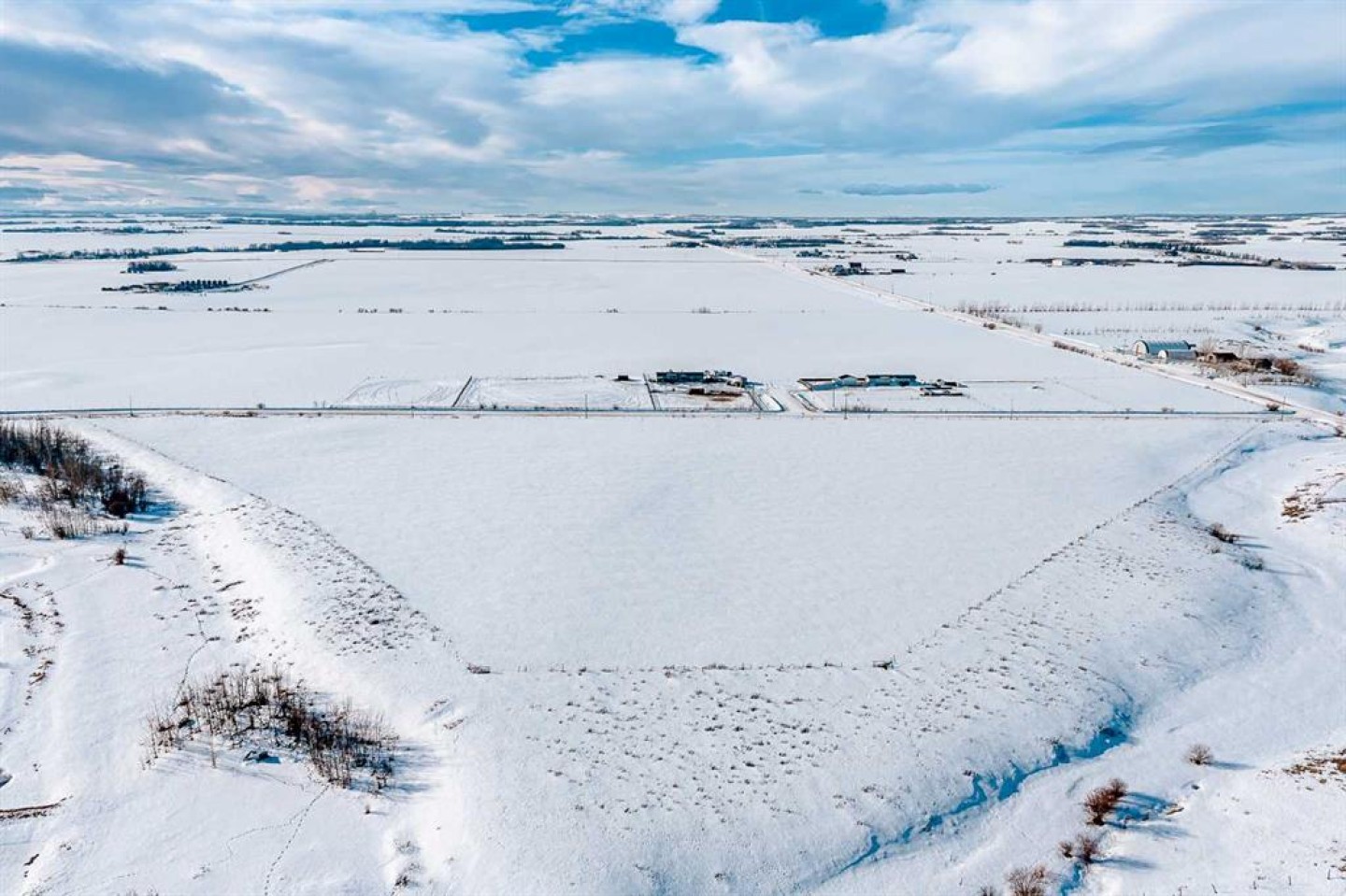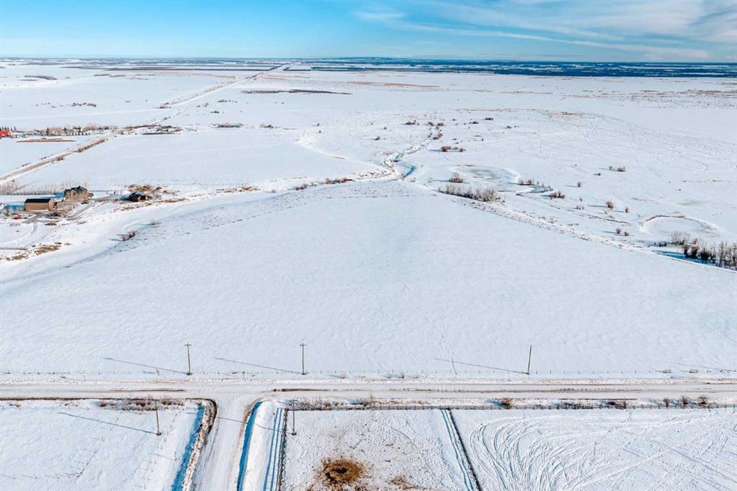 Positioned on the corner of Range Road 50A and the tip of Township Road 734, this 27.09-acre agricultural-zoned parcel offers elevated terrain, clean sight-lines, and exceptional access just 29 minutes from Grande Prairie (Property to city limits Northside 100st is only 20 min). Naturally high and gently rolling to the south east, the land is cleared and ready for development — providing an ideal setting for a farmstead, equestrian estate, agricultural operation, or ag-integrated home-based business. Zoned Agricultural, the district recognizes farming as the predominant land use and allows for a broader range of agricultural and discretionary uses compared to Country Residential districts. Permitted and discretionary uses (subject to County approval) include: Agricultural operations, Farmstead development, Clustered farm dwellings (discretionary), Home Occupation – Agricultural, Greenhouse, market garden, sod farm, Veterinary clinic, kennel, agricultural industry (discretionary), Bed & Breakfast facility (discretionary), Electricity production (discretionary) With strong road frontage and no current improvements, buyers have full flexibility in site planning, yard orientation, and future expansion. This parcel forms part of the greater Kleskun Springs land assembly, with adjacent holdings also available, including: 56.67 acres CR-5 with residence (Kleskun Springs North), 22.41 acres CR-5 (Kleskun Springs East), 112.28 acres Ag with residence (Kleskun Springs South). Opportunity exists for phased acquisition or larger-scale estate assembly. Buyers to verify zoning allowances, development permit requirements, subdivision regulations, and permitted discretionary uses with the County of Grande Prairie No. 1.
