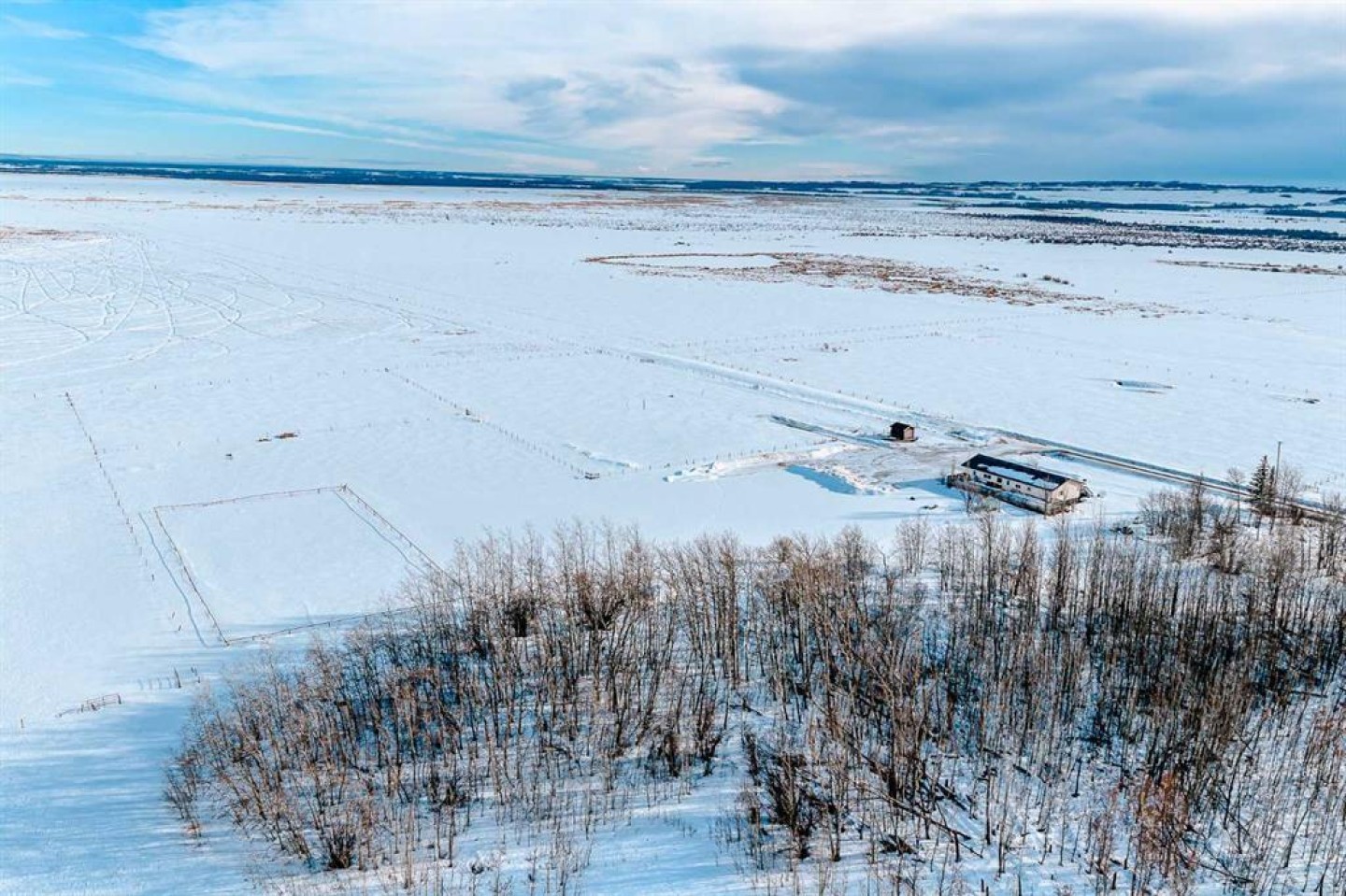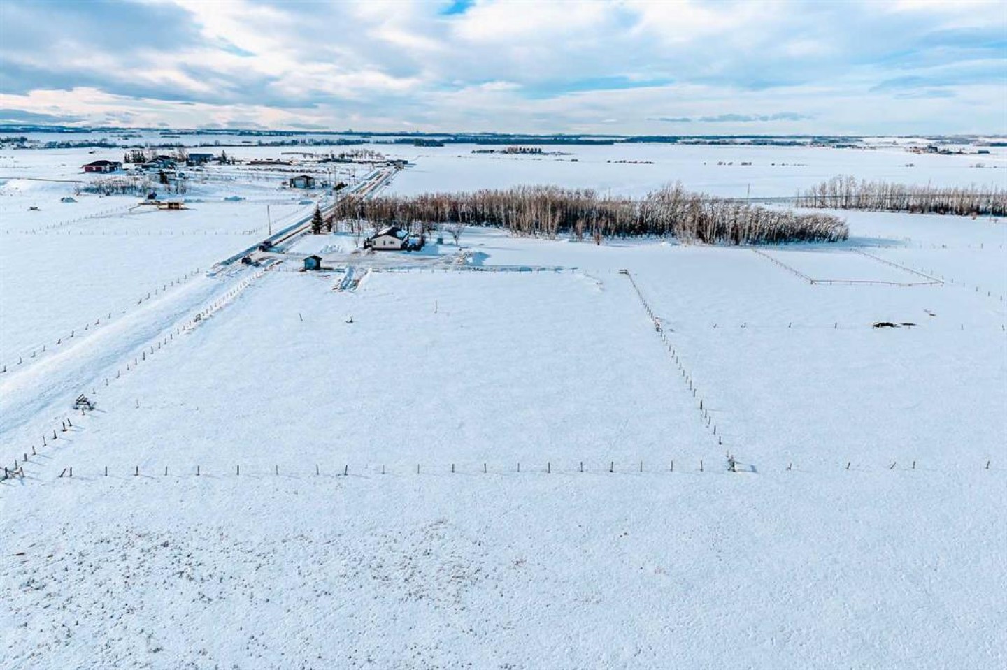 Located just 29 minutes northeast of Grande Prairie (Property to city limits Northside 100st is only 20 min), this 112.28-acre agricultural holding offers rare scale, high output artesian well, upgraded infrastructure, and panoramic prairie views in one of the County’s most scenic rural corridors. Set on naturally elevated land with sweeping southern exposure, the property blends usable agricultural acreage with natural ponds and established wildlife habitat—creating both operational flexibility and private retreat appeal. The 1,626 sq. ft. open-concept home features 4 bedrooms and 2 bathrooms. Recent improvements include: Newer vinyl plank flooring, fresh interior paint, updated appliances (fridge, built-in oven, cooktop), newer exterior doors and hardware, foundation reinforcement with steel posts for long-term structural stability. Extensive decking adds over 3,000 sq. ft. of indoor-outdoor living space, including a 74' x 16' primary deck overlooking the surrounding landscape. Two separate driveway entrances and a widened gravel drive provide ease of access for equipment, trailers, or agricultural operations. Water is supplied by a high-producing artesian well (~2,000 m³/day, no pump needed). Three fishponds, along with additional wildlife ponds fed by natural runoff and groundwater, enhance biodiversity and long-term land utility. Agricultural zoning recognizes farming as the predominant land use and allows for a variety of other discretionary development. With 112.28 acres on a single title, this property offers multiple strategic paths: Private estate with operational land base, Multi-generational family holding, Agricultural expansion parcel or Long-term land banking near Grande Prairie. Assembly opportunity with adjacent Kleskun Springs parcels. Also available within the Kleskun Springs land grouping: 56.67 acres with residence (North), 27.09 acres Agricultural (West), 22.41 acres CR-5 (East). Combined acquisition presents over 218 acres of contiguous holdings. Buyers to verify zoning allowances, well specifications, licensing, and development requirements with the County of Grande Prairie No. 1.
