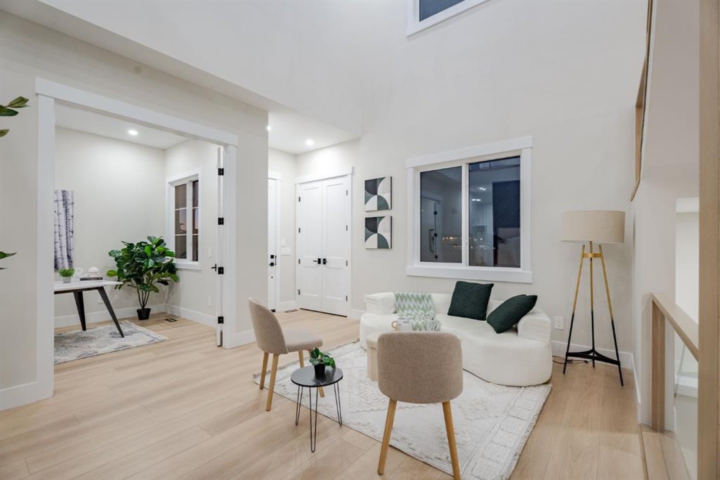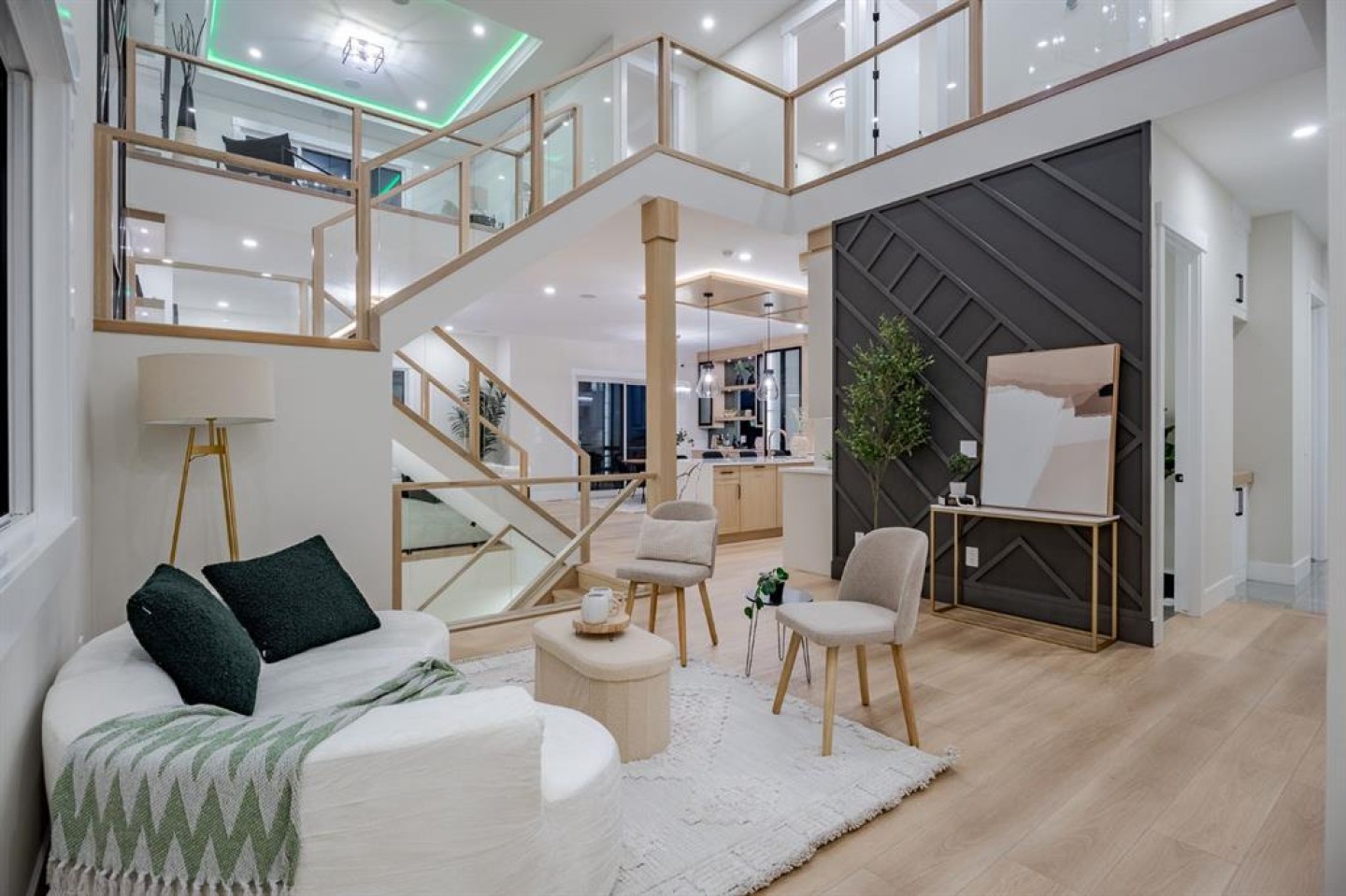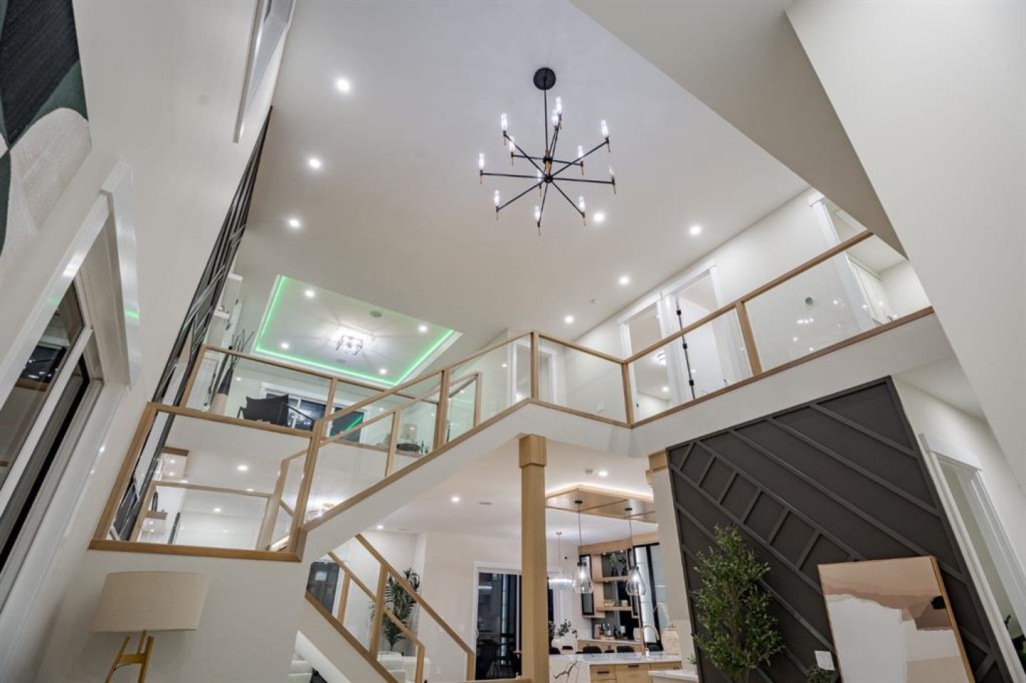 Welcome to this showhome by Twenty First Century Homes, located in the growing community of Waterford Estates in Chestermere. Offering approximately 4,500 sq ft of developed living space on a 45’ x 113’ lot, this property provides a spacious and functional layout designed for modern family living. The main floor features 10’ ceilings, an open-to-above living area, family room, dining space, and a full 3-piece bathroom. A versatile flex room can function as a bedroom, office, or additional living area. The kitchen is equipped with upgraded appliances and complemented by a walk-through spice kitchen with direct access to the mudroom and triple attached garage. Upstairs, you will find 4 generously sized bedrooms, each with walk-in closets, including two primary bedrooms with private ensuites. A bonus room with tray ceiling detail and an open-to-below feature enhances natural light and openness. The upper-level laundry room includes cabinetry and a sink for added convenience. The fully developed basement expands the living space and includes 2 additional bedrooms, a bathroom, a games/recreation room, and a wet bar. Located close to schools, parks, shopping, and everyday amenities, this property offers substantial living space in a well-connected Chestermere location.