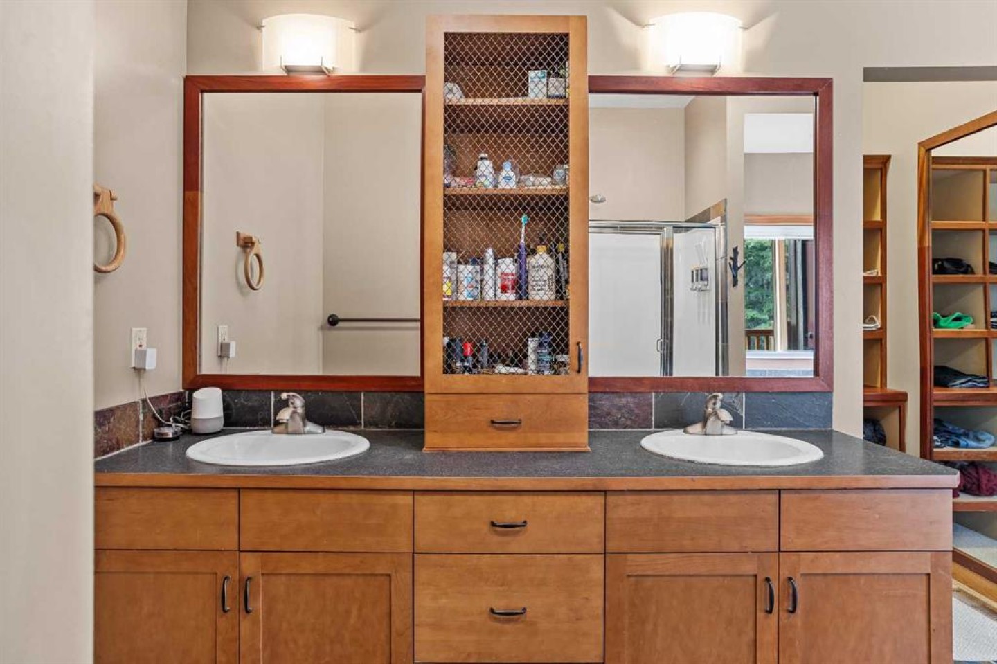 214 Eagle Point is an extraordinary mountain sanctuary perched on the sunny side of Canmore—where timeless alpine charm meets refined modern living. From the moment you step inside, the home welcomes you with a soaring great room anchored by a magnificent stone fireplace, rich exotic hardwood floors, and an abundance of natural light. Expansive windows draw the eye outward to breathtaking, unobstructed views of the Rocky Mountains, creating a seamless connection between the beauty indoors and the spectacular landscape beyond. At the heart of the home lies a gourmet kitchen designed for both culinary creativity and social gatherings, all framed by panoramic mountain scenery. Step outside onto the gated south-facing deck, an exceptional vantage point for soaking up sunshine and admiring the rugged peaks. Whether you're enjoying your morning coffee or hosting friends at sunset, this outdoor living space elevates every moment. The rear yard is a private, tranquil oasis backing onto an environmental reserve—lush, evergreen, and alive with nature. It’s an idyllic setting for quiet relaxation, alfresco dining, or unwinding in the hot tub beneath a sky full of stars. More than a home, 214 Eagle Point offers a lifestyle shaped by comfort, style, and the unparalleled beauty of Canmore’s natural surroundings. From fireside evenings to forest-side mornings, every day here feels like a retreat.