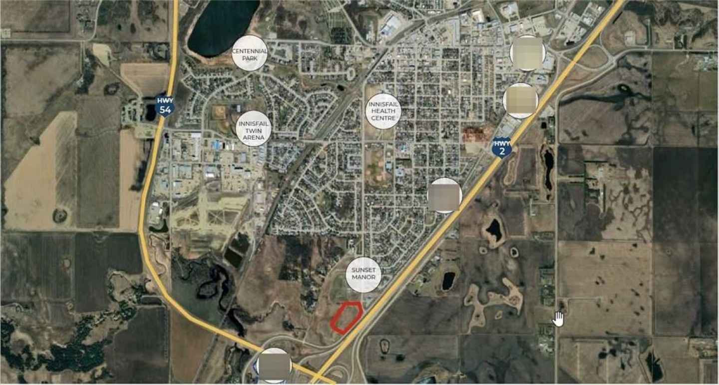 Commercial Development Land in Innisfail Position your business for success with this 10-acre highway commercial property at the south entrance of Innisfail. Offering exceptional visibility along QE II and Highway 54, the site is fully serviced and ready for development. Ideal for a hotel, gas bar, automotive dealership, retail complex, or restaurant hub, this location provides unmatched access between Calgary & Edmonton in a growing, business-friendly community with strong infrastructure and competitive costs, a prime opportunity in the heart of Central Alberta.