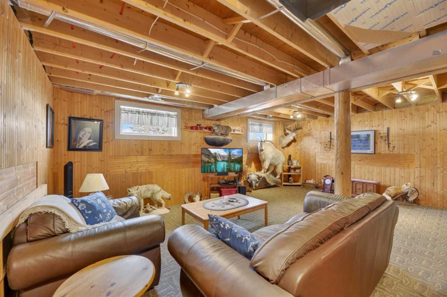Saddle up & step into a life where wide-open skies meet the warm embrace of handcrafted logs—this 1½-story beauty is where cowboys & cowgirls truly live the dream. Beautiful & rustic ride side by side in this 1,549 sq ft above-grade log home, offering 5 bedrooms total & room for every member of your posse. The spacious primary suite rests on the main floor, with plenty of room for your full bedroom set, a generous walk-in closet, & easy access to the main floor laundry closet. After a long day on the range, retreat to the dreamy 4-piece bath featuring a classic clawfoot tub—perfect for soaking under candlelight while the prairie wind whispers outside. The open-concept main floor is built for gathering. Large windows on all sides pour in natural light, illuminating the beautifully maintained log beams overhead. The well-laid-out kitchen boasts abundant cupboard space & a grand island with seating—a place for cowpokes to pull up a chair, share a hearty meal, & swap stories of the day’s adventures. Upstairs, two more spacious bedrooms stand ready for family or guests, separated by a charming 3-piece bath complete with a deep soaker tub to wash away the dust of the trail. Down below, the fully developed basement is made for memory-making. A large family room offers space for a games area & movie nights alike. Two additional bedrooms—one currently serving as a fine home office—provide flexibility for growing families or visiting ranch hands. A full 3-piece bathroom on this level ensures comfort & convenience without having to head upstairs. When summer evenings roll in, the enormous covered front deck becomes your front-row seat to prairie sunsets blazing in the western sky. Watch your stock roam & play, or stroll over to the sheltered firepit area just steps from the home—perfect for roaring fires, laughter, & s’mores under the stars. And for your rigs and equipment? An oversized, finished, triple detached garage awaits—heated with radiant heat. Two bays are fully finished, while the single bay offers cold storage for all your gear. And to finish it all off. A well set up Tack shed for all your gear. Set up, move-in ready, & just minutes to town for all amenities, this must-see property is the kind folks write songs about. You won’t believe your eyes. “Home Is Where Your Story Begins!”