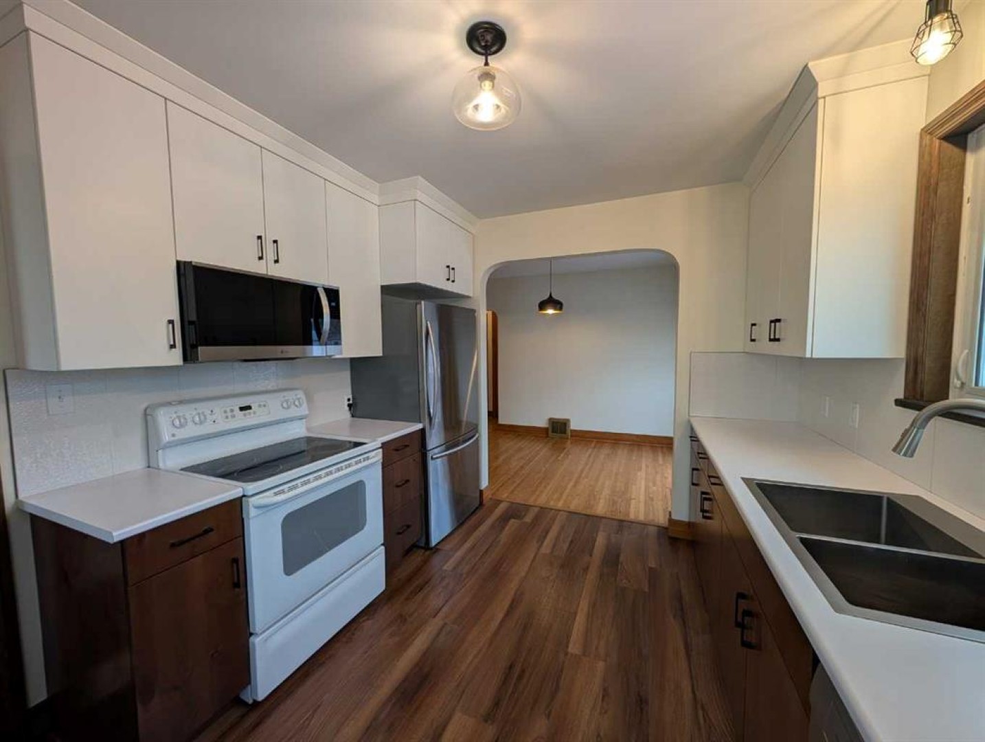 Welcome to this charming bungalow located on the SW Hill, just minutes from parks, schools, shopping, and many of the city’s everyday amenities. Offering 964 sq. ft. of comfortable living space, this well maintained home features 4 bedrooms and two full 4pc bathrooms, making it an excellent option for families, first-time buyers, or those looking for a move-in-ready property. The main floor welcomes you with character and warmth the moment you step inside, highlighted by classic archways and built-in features that add timeless charm. The bright living room is filled with natural light and features a faux white brick fireplace that creates a cozy focal point. The dining area flows nicely from the living room and offers convenient access to the deck and backyard. The kitchen provides a functional layout with ample cabinetry and includes all appliances. Down the hallway you will find two comfortable bedrooms and a full 4pc bathroom. The fully developed lower level offers excellent additional living space with a large family room, two more bedrooms, another 4pc bathroom, and a laundry room complete with cabinets and a sink for added convenience. Outside, the spacious backyard offers plenty of room to enjoy with a firepit area, greenhouse, storage shed, and RV parking at the rear of the property. A single detached garage and large driveway provide ample off street parking. Notable updates include newer vinyl windows, a furnace replaced in 2025, and a hot water tank replaced in 2021. With immediate possession available, this inviting home is ready for its next owners to move in and enjoy.
